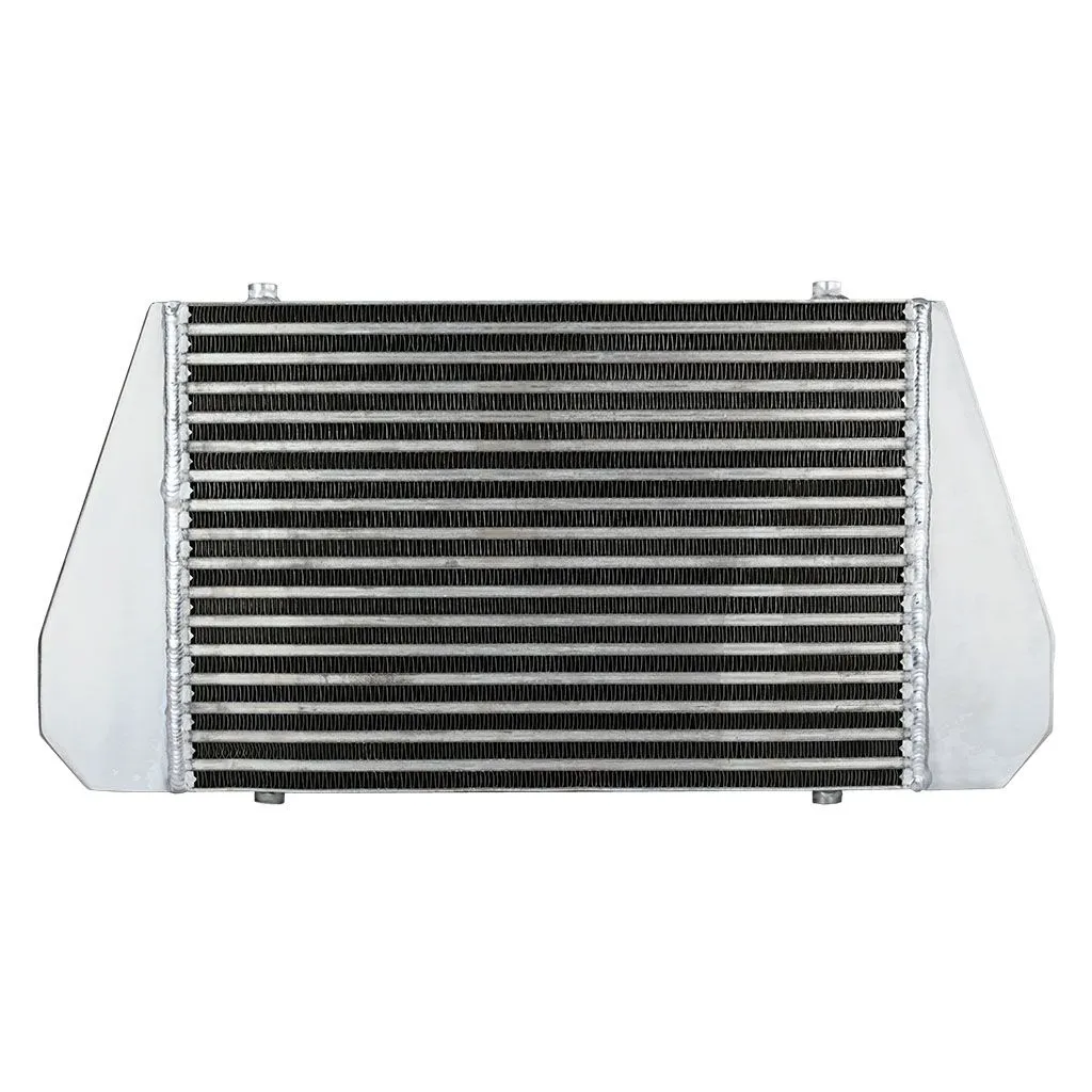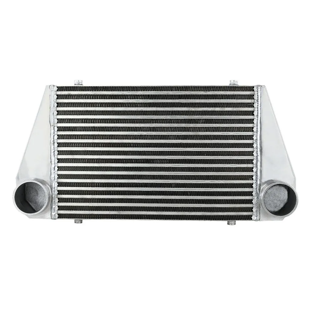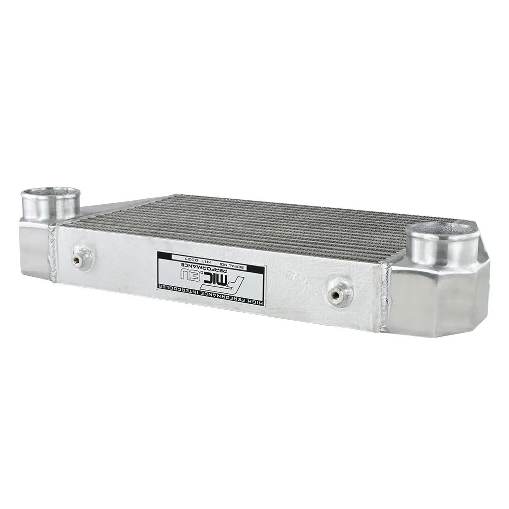 Intercooler o wymiarach rdzenia: 450x300x76mm, całkowite wymiary: 610x300x110mm, średnica wlot/wylot 76mm, wydajność do mocy 900KM. Posiada bardzo wydajny, zarówno wewnętrzny, jak i zewnętrzny rdzeń drugiego typu, grube ścianki wykonane z najwyższej jakości polerowanego aluminium, co gwarantuje ogromną wytrzymałość, świetne chłodzenie, a także doskonałe przepływy powietrza (w przeciwieństwie do intercoolerów z samochodów dostawczych nie "zapychają" dolotu). Znakomicie zastępują seryjne intercoolery zwiększając osiągi samochodu. Nasze intercoolery jako jedyne były testowane ciśnieniem ponad 10 barów - nawet tak duże ciśnienie nie robi na nich żadnego wrażenia. Intercoolery posiadają wytłoczone logo FMIC.EU, które wyróżnia je z tłumu "podobnych" chłodnic dostępnych na rynku. Kupując nasz cooler masz gwarancję otrzymania produktu o najwyższej jakości wykonania ze świetnymi przepływami, charakteryzujący się znakomitym chłodzeniem! W przeciwieństwie do podobnych intercoolerów sprzedawanych w internecie, wszystkie sprzedawane przez nas chłodnice posiadają nowy, dużo wydajniejszy rdzeń drugiego typu! Stary rdzeń widoczny po prawej stronie miał bardzo rzadlko ułożone żeberka, do tego tylko w jednym rzędzie (patrząc przez wlot było widać wylot), co skutkowało słabym chłodzeniem - przelatujące nim powietrze nie oddawało całego ciepła. Za odprowadzenie ciepła odpowiedzialny jest zupełnie nowy, zewnętrzny, złożony z dwóch warstw rdzeń. Jego wewnętrzna część posiada cienkie, dodatkowo nacinane lamelki, które dzięki swojej przewiewności znakomicie oddają ciepło. Ich odpowiednie ułożenie oraz widoczne na zdjęciu nacięcia gwarantują optymalną wentylację (ogromna poprawa chłodzenia w porównaniu do zewnętrznego, montowanego w tańszych coolerach, gęstego rdzenia), natomiast zewnętrzna, mocna warstwa lamelek chroni go przed uszkodzeniami mechanicznymi.Intercooler - FMIC.EU
