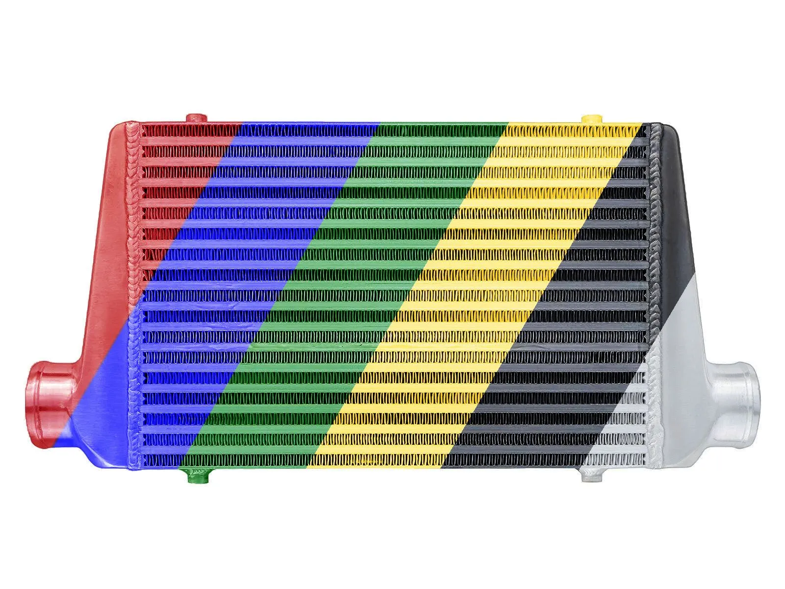 Intercooler o wymiarach rdzenia: 450x300x76mm, całkowite wymiary: 630x300x76mm, średnica wlot/wylot 76mm, wydajność do mocy 750KM. Posiada bardzo wydajny, zarówno wewnętrzny, jak i zewnętrzny rdzeń drugiego typu, grube ścianki wykonane z najwyższej jakości polerowanego aluminium, co gwarantuje ogromną wytrzymałość, świetne chłodzenie, a także doskonałe przepływy powietrza (w przeciwieństwie do intercoolerów z samochodów dostawczych nie "zapychają" dolotu). Znakomicie zastępują seryjne intercoolery zwiększając osiągi samochodu. Nasze intercoolery jako jedyne były testowane ciśnieniem ponad 10 barów - nawet tak duże ciśnienie nie robi na nich żadnego wrażenia. Intercoolery posiadają wytłoczone logo FMIC.EU, które wyróżnia je z tłumu "podobnych" chłodnic dostępnych na rynku. Kupując nasz cooler masz gwarancję otrzymania produktu o najwyższej jakości wykonania ze świetnymi przepływami, charakteryzujący się znakomitym chłodzeniem! W przeciwieństwie do podobnych intercoolerów sprzedawanych w internecie, wszystkie sprzedawane przez nas chłodnice posiadają nowy, dużo wydajniejszy rdzeń drugiego typu! Stary rdzeń widoczny po prawej stronie miał bardzo rzadlko ułożone żeberka, do tego tylko w jednym rzędzie (patrząc przez wlot było widać wylot), co skutkowało słabym chłodzeniem - przelatujące nim powietrze nie oddawało całego ciepła. Za odprowadzenie ciepła odpowiedzialny jest zupełnie nowy, zewnętrzny, złożony z dwóch warstw rdzeń. Jego wewnętrzna część posiada cienkie, dodatkowo nacinane lamelki, które dzięki swojej przewiewności znakomicie oddają ciepło. Ich odpowiednie ułożenie oraz widoczne na zdjęciu nacięcia gwarantują optymalną wentylację (ogromna poprawa chłodzenia w porównaniu do zewnętrznego, montowanego w tańszych coolerach, gęstego rdzenia), natomiast zewnętrzna, mocna warstwa lamelek chroni go przed uszkodzeniami mechanicznymi.Intercooler - Kolor - w wiadomości napisz, jaki ma być kolor.