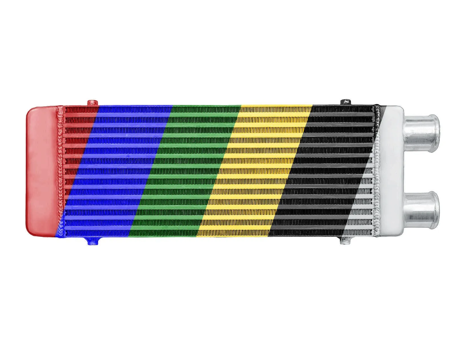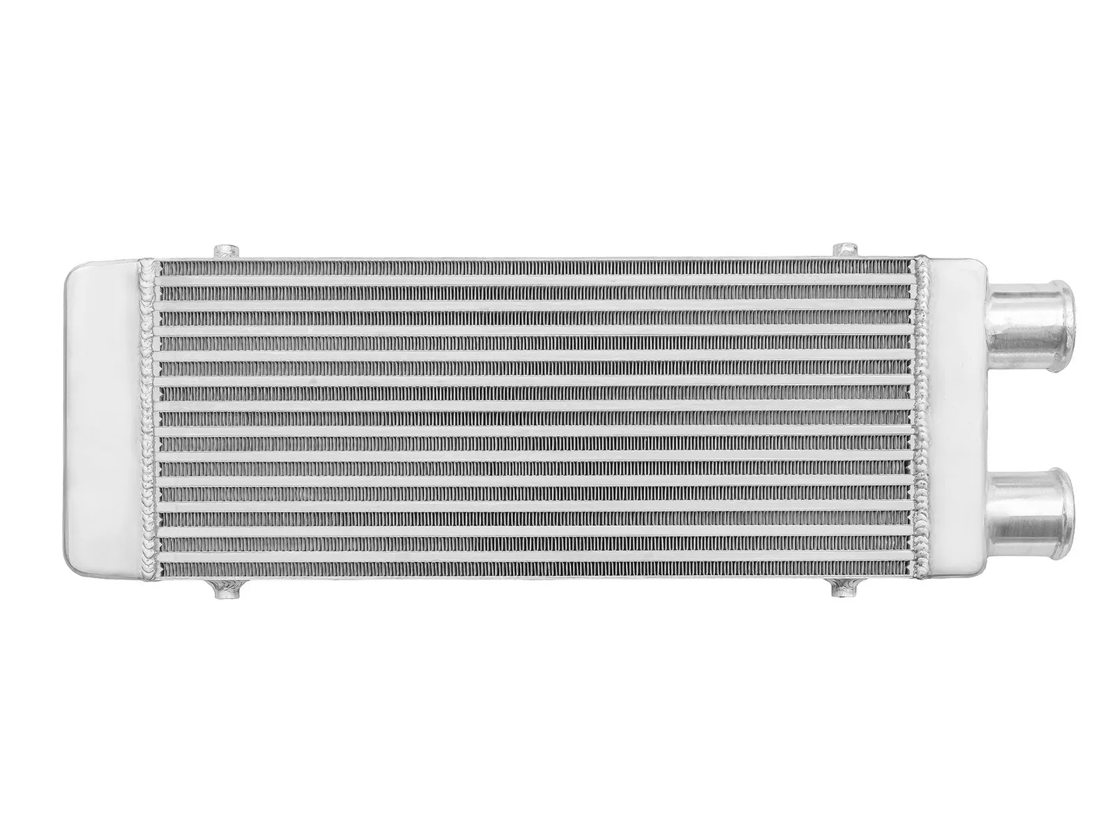Intercooler o wymiarach rdzenia: 550x230x65mm, całkowite wymiary: 660x230x65mm, przespawany wlot i wylot na jedną stronę o średnicach 63mm, wystarczający do mocy 300KM. Posiada bardzo wydajny rdzeń, grube ścianki wykonane z najwyższej jakości polerowanego aluminium, co gwarantuje ogromną wytrzymałość, świetne chłodzenie, a także doskonałe przepływy powietrza (w przeciwieństwie do intercoolerów z samochodów dostawczych nie "zapychają" dolotu). Znakomicie zastępują seryjne intercoolery zwiększając osiągi samochodu. Świetnie sprawdza się w samochodach mających orurowanie idące z turbo i do kolektora po jednej stronie samochodu, np. Audi A3, VW Golf 4, Bora, Seat Ibiza, Leon itd. Nasze intercoolery były testowane do 5 barów - nawet tak duże ciśnienie nie robi na nich żadnego wrażenia. Wszystkie sprzedawane na naszych aukcjach intercoolery posiadają nowy, dużo wydajniejszy rdzeń drugiego typu! Stary rdzeń widoczny po prawej stronie miał bardzo rzadko ułożone żeberka, do tego tylko w jednym rzędzie (patrząc przez wlot było widać wylot), co skutkowało słabym chłodzeniem - przelatujące nim powietrze nie oddawało całego ciepła. Oferowane na naszych aukcjach intercoolery posiadają dużo gęstszy, naprzemiennie ułożony radiator, co gwarantuje ogromną poprawę chodzenia! Intercooler jednostronny jest robiony na indywidualne zamówienie. Czas oczekiwania od 1 do 2 dni roboczych!!! Intercooler - Kolor - w wiadomości napisz, jaki ma być kolor.