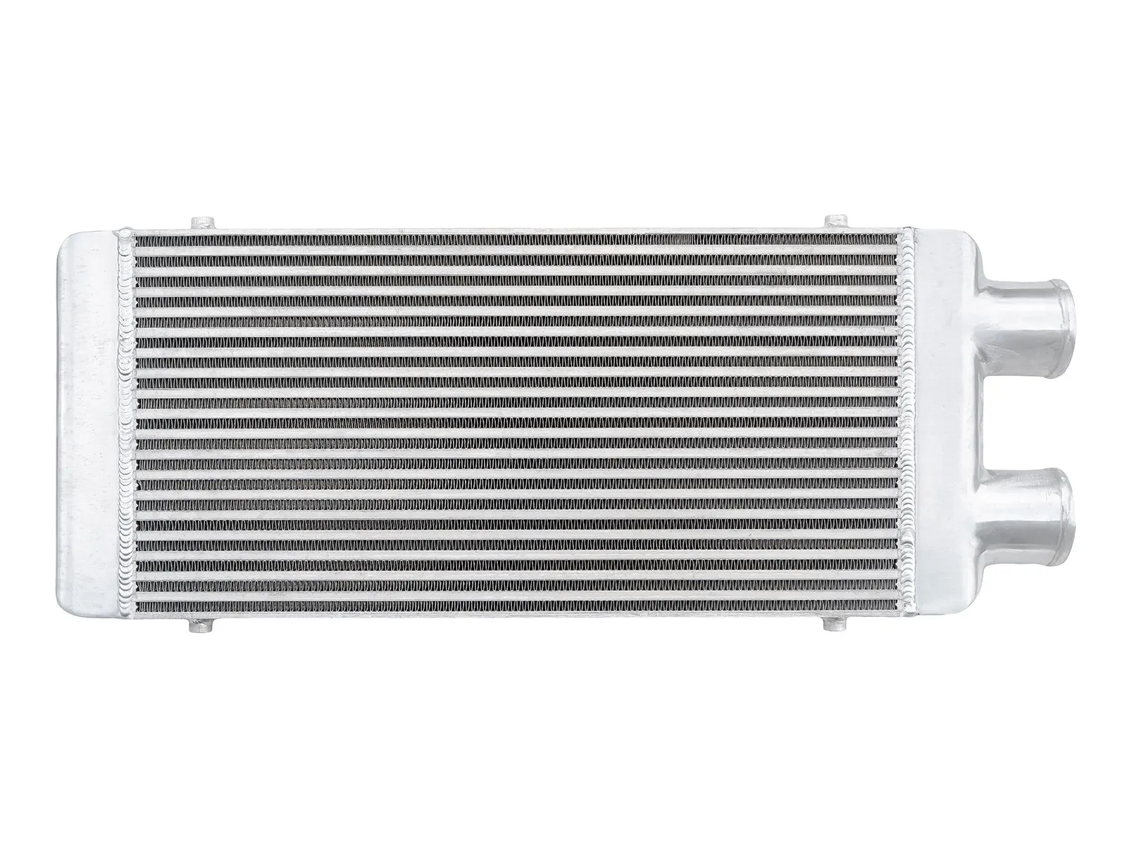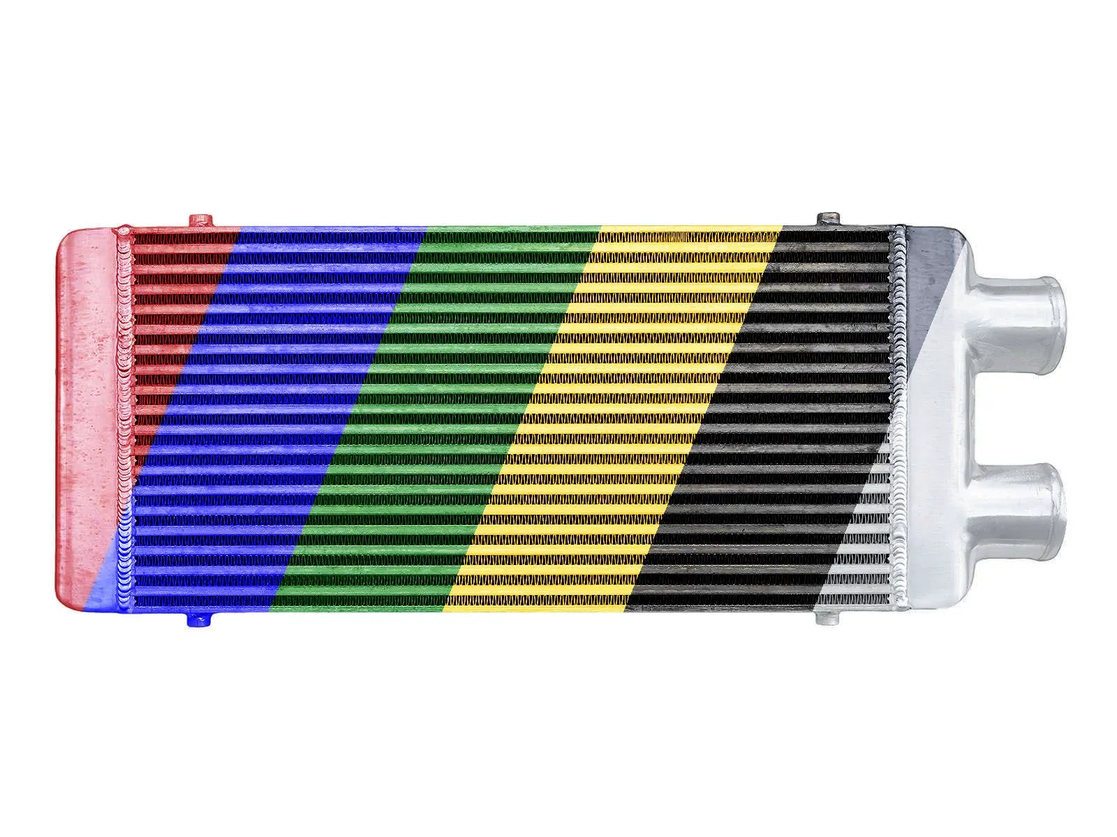 Intercooler o wymiarach rdzenia: 600x300x76mm, wymiar całkowity: 730x300x76mm, przespawany wlot i wylot na jedną stronę o średnicach 76mm, wystarczający do mocy 550KM. Posiada bardzo wydajny rdzeń, grube ścianki wykonane z najwyższej jakości polerowanego aluminium, co gwarantuje ogromną wytrzymałość, świetne chłodzenie, a także doskonałe przepływy powietrza (w przeciwieństwie do intercoolerów z samochodów dostawczych nie "zapychają" dolotu). Znakomicie zastępują seryjne intercoolery zwiększając osiągi samochodu. Świetnie sprawdza się w samochodach mających orurowanie idące z turbo i do kolektora po jednej stronie samochodu. Nasze intercoolery były testowane do 5 barów - nawet tak duże ciśnienie nie robi na nich żadnego wrażenia. Wszystkie sprzedawane na naszych aukcjach intercoolery posiadają nowy, dużo wydajniejszy rdzeń drugiego typu! Stary rdzeń widoczny po prawej stronie miał bardzo rzadko ułożone żeberka, do tego tylko w jednym rzędzie (patrząc przez wlot było widać wylot), co skutkowało słabym chłodzeniem - przelatujące nim powietrze nie oddawało całego ciepła. Oferowane na naszych aukcjach intercoolery posiadają dużo gęstszy, naprzemiennie ułożony radiator, co gwarantuje ogromną poprawę chodzenia! Intercooler jednostronny jest robiony na indywidualne zamówienie. Czas oczekiwania od 1 do 2 dni roboczych!!! Intercooler - Kolor - w wiadomości napisz, jaki ma być kolor.