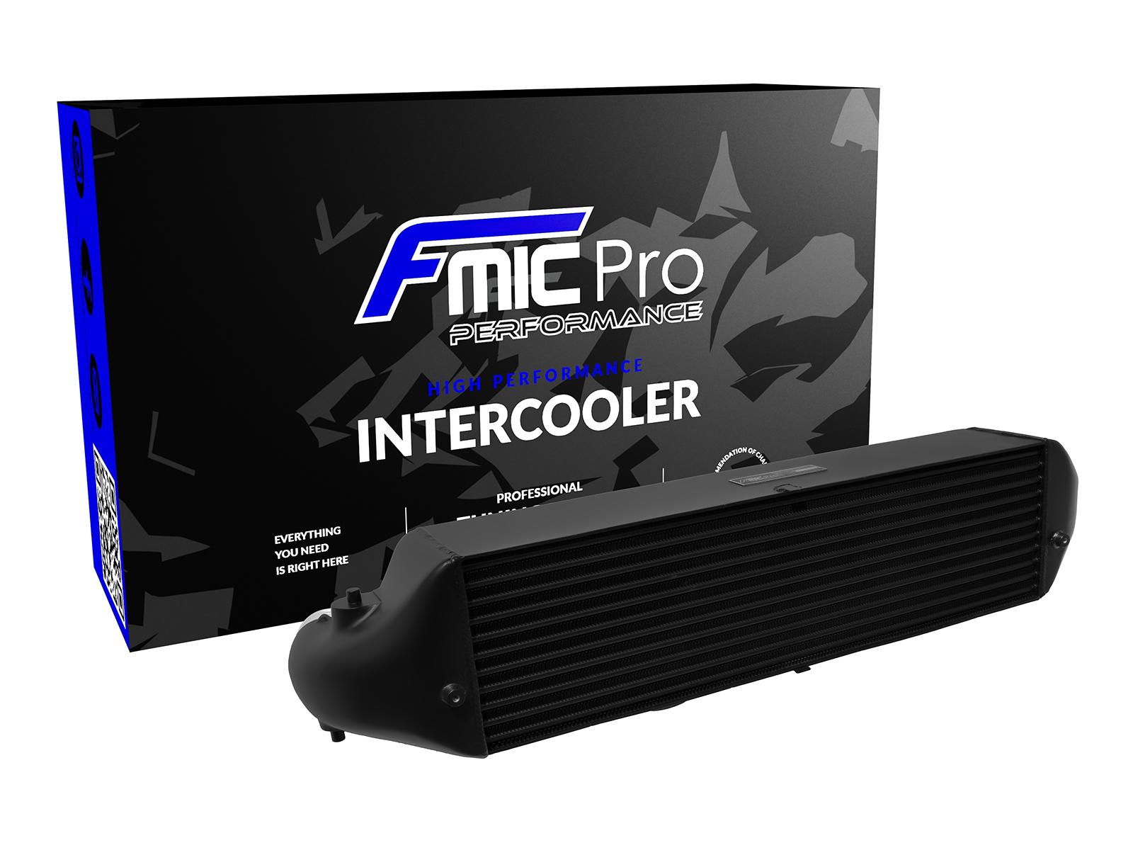 Intercooler dedykowany FMIC.Pro to najnowszy produkt z naszej profesjonalnej linii tuningowych chłodnic powietrza. Za jego niespotykaną wydajność odpowiedzialny jest unikalny rdzeń, który łączy w sobie dwie najważniejsze cechy: ekstremalne chłodzenie i maksymalne przepływy. Niska temperatura powietrza w połączeniu ze zminimalizowanym pressure drop gwarantują zaskakująco wysoką moc silnika po jego remapie. Całość dopełnia podwójnie wentylowany, zewnętrzny rdzeń, który w błyskawicznym tempie oddaje wysoką temperaturę. Idealnie dopasowane boczki intercoolera są obrabiane na maszynach CNC, co zapewnia powtarzalność i dokładność punktów montażowych oraz przyłączy. Każdy intercooler dedykowany FMIC.Pro pasuje w miejsce seryjnego IC, dodatkowo posiada swój unikalny numer seryjny. W komplecie zestaw montażowy intercoolera oraz kierownica powietrza