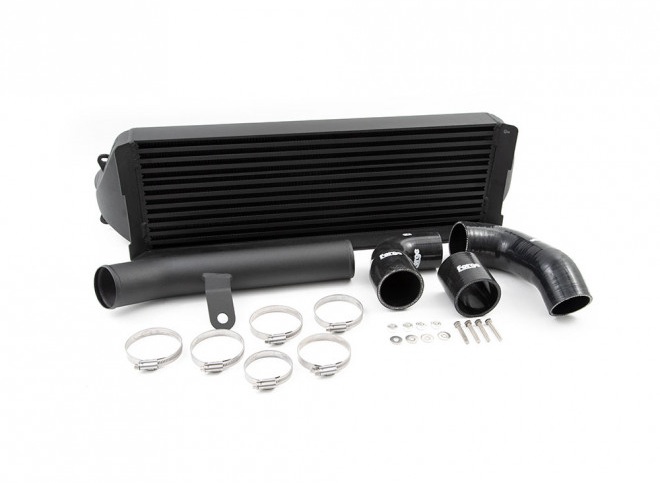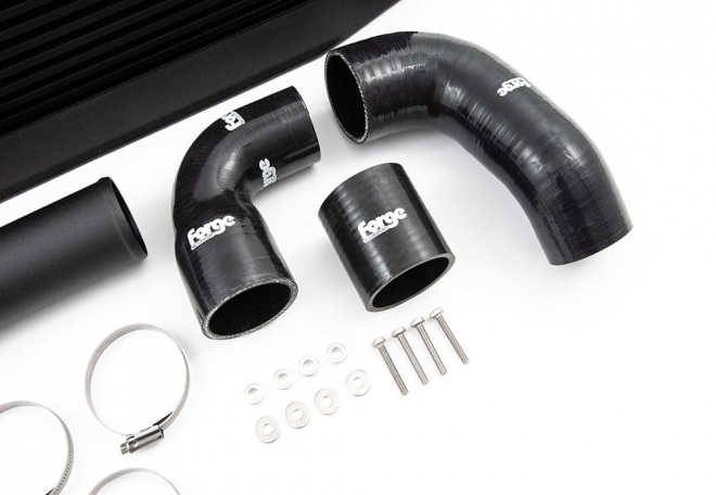 Intercooler Forge Motorsport utrzymuje bezpieczne temperatury powietrza dolotowego (IAT) i zapobiega sytuacji, w której seryjny sterownik ECU redukuje kąt zapłonu, powodując spadek mocy. Jeżeli używasz Hyundai i30N w dynamicznej jeździe drogowej lub posiadasz wysokowydajną mapę silnika w gorącym klimacie, ten produkt jest niezbędnym ulepszeniem. Zastosowany rdzeń bar & plate oferuje aż 129% większą objętość oraz ponad 71% większą powierzchnię czołową w porównaniu do seryjnego intercoolera, co czyni intercooler Forge Motorsport największym obecnie dostępnym rozwiązaniem na rynku. Aby zapewnić maksymalną wydajność chłodzenia, zespół projektowy opracował dedykowany system kanałów powietrznych, sprytnie zintegrowany z zaawansowaną konstrukcją intercoolera. Średnice wlotu i wylotu zostały zwiększone do 65 mm, co stanowi 27% wzrost objętości przepływu względem seryjnego chłodnicy i zapewnia idealny przepływ powietrza. Dodatkowo zastosowano dedykowaną rurę aluminiową, której średnica została zwiększona z fabrycznych 50 mm do 64 mm (o 14 mm). Rura doładowania oraz intercooler posiadają czarne, strukturalne malowanie proszkowe, gwarantujące maksymalną trwałość. Połączenie tego intercoolera z dolotem Forge, wysokiej jakości układem wydechowym typu cat-back oraz seryjnym oprogramowaniem ECU pozwala osiągnąć bezprecedensowy poziom osiągów. Końcowe wyniki testów okazały się imponujące – intercooler Forge Motorsport zmniejszył IAT o połowę, a jednocześnie zwiększył moc i moment obrotowy ponad fabryczne wartości Hyundai: z 275 KM do 307 KM z 278 lb-ft do 347 lb-ft momentu obrotowego Zastosowanie: Hyundai i30N Mk3.5 after 2021 Facelift