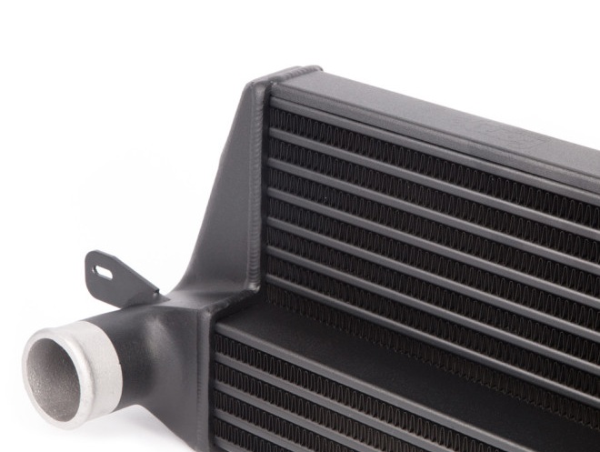 Forge Motorsport wykorzystało jeden z pierwszych wyprodukowanych w Wielkiej Brytanii egzemplarzy Mini R56, aby natychmiast rozpocząć prace nad ulepszeniem seryjnego intercoolera OEM. Efektem tych działań było stworzenie przełomowego, innowacyjnego rdzenia intercoolera w kształcie litery „L”. Wiele innych firm skopiowało później to rozwiązanie, jednak Forge Motorsport do dziś pozostaje niekwestionowanym liderem rynku, dzięki niezwykle rygorystycznym testom przeprowadzonym na etapie rozwoju. Zespół inżynierów nie poprzestał na standardowych rozwiązaniach — przetestowano cztery różne konstrukcje rdzeni powietrznych, zanim wybrano finalny intercooler typu stuffed fin stepped core dla modeli BMW Mini Cooper S Turbo (R56/R57) od 2007 roku. Obniżenie temperatury powietrza dolotowego zwiększa gęstość mieszanki trafiającej do cylindra, co bezpośrednio przekłada się na wzrost mocy. Intercooler został wykonany z połączonego rdzenia o wysokiej wydajności cieplnej 80/40 mm, oferującego 250% większą powierzchnię wymiany ciepła oraz 125% grubszą podstawę rdzenia, aby osiągnąć jak najlepsze rezultaty. Co istotne, nawet przy stosunkowo niskich prędkościach drogowych i niewielkim przepływie powietrza, intercooler był w stanie obniżyć temperaturę powietrza o 9°C w porównaniu do jednostki seryjnej. Jeszcze lepsze rezultaty uzyskano przy wyższych prędkościach podczas testów torowych. Zestaw dostarczany jest ze wszystkimi elementami montażowymi, co zapewnia łatwą instalację. Zastosowanie: Mini II generacji (R55 / R56 / R57 / R58 / R59) R55 Clubman Pre LCI 2007–2009 R56 Hatchback Pre LCI 2007–2009 R56 Hatchback LCI 2010–2014 R57 Convertible LCI 2010–2014 R58 Coupé LCI 2012–2015 R59 Roadster Cooper S 1.6 Turbo Benzyna (N18) R59 Roadster JCW 1.6 Turbo Benzyna (N18)
