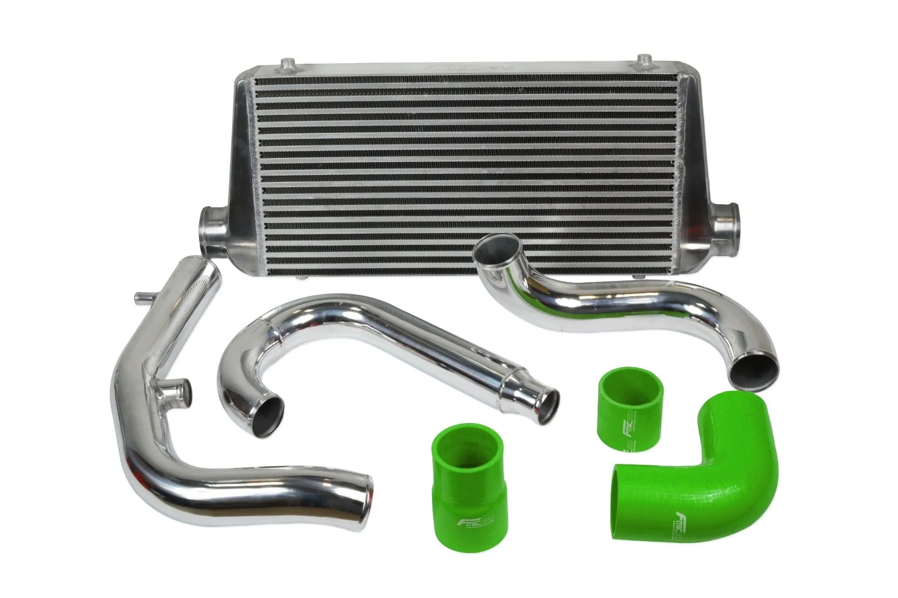 Zestaw dedykowany do Mitsubishi Lancer Evo 7/8/9 złożony jest z odpowiednio dociętych i wyprofilowanych rur oraz kolanek silikonowych i aluminiowych, intercooler posiada mocowania do karoserii. Zestaw zawiera wszystkie części niezbędne do prawidłowego montażu intercoolera w samochodzie. Zalecany montaż w warsztacie tuningowym. Intercooler o wymiarach rdzenia: 600x300x76mm, całkowitych: 780x300x76mm, ze średnicą wlot/wylot 76mm, wystarczający do mocy 900KM. Posiada bardzo wydajny rdzeń, grube ścianki wykonane z najwyższej jakości polerowanego aluminium, co gwarantuje ogromną wytrzymałość, świetne chłodzenie, a także doskonałe przepływy powietrza (w przeciwieństwie do intercoolerów z samochodów dostawczych nie "zapychają" dolotu). Znakomicie zastępuje seryjny intercooler zwiększając osiągi samochodu. Nasze intercoolery jedyne na Allegro były testowane do 5 barów - nawet tak duże ciśnienie nie robi na nich żadnego wrażenia. W przeciwieństwie do podobnych intercoolerów z Allegro, wszystkie sprzedawane na naszych aukcjach chłodnice posiadają nowy, dużo wydajniejszy rdzeń drugiego typu! Stary rdzeń widoczny po prawej stronie miał bardzo rzadlko ułożone żeberka, do tego tylko w jednym rzędzie (patrząc przez wlot było widać wylot), co skutkowało słabym chłodzeniem - przelatujące nim powietrze nie oddawało całego ciepła. Oferowane na naszych aukcjach intercoolery posiadają dużo gęstszy, naprzemiennie ułożony radiator, co gwarantuje ogromną poprawę chłodzenia! Oprócz tego widoczny wyżej zewnętrzny radiator ma dodatkowo nacinane (wentylowane) żeberka, dzięki czemu znacznie szybciej oddaje swoje ciepło.Kolor - Zielony