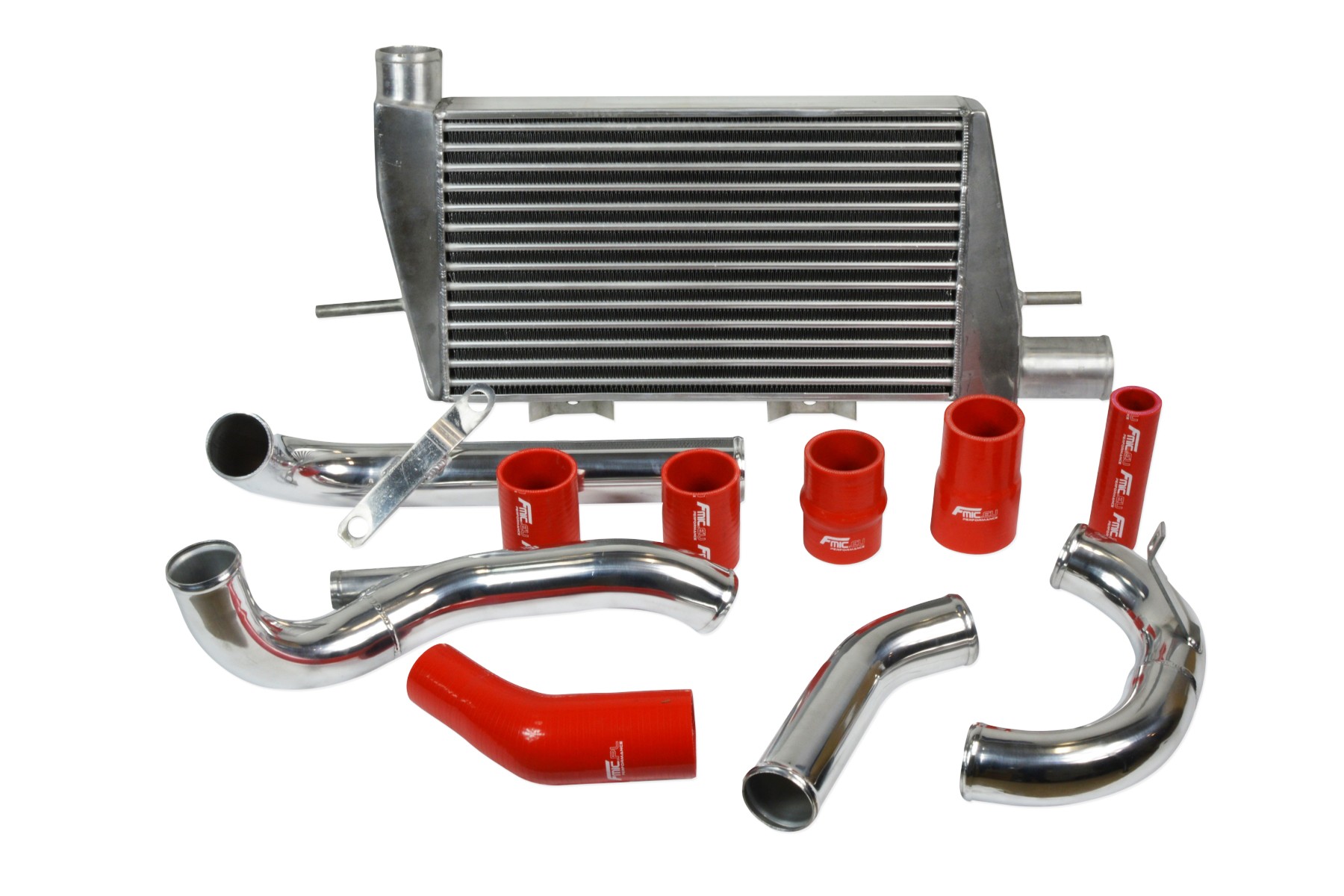 Zestaw dedykowany do Mitsubishi Lancer Evo X złożony jest z odpowiednio dociętych i wyprofilowanych rur oraz kolanek silikonowych i aluminiowych, intercooler posiada mocowania do karoserii. Zestaw zawiera wszystkie części niezbędne do prawidłowego montażu intercoolera w samochodzie. Zalecany montaż w warsztacie tuningowym. Intercooler posiada bardzo wydajny rdzeń o wymiarach 500x300x76mm, grube ścianki wykonane z najwyższej jakości aluminium, co gwarantuje ogromną wytrzymałość, świetne chłodzenie, a także doskonałe przepływy powietrza (w przeciwieństwie do intercoolerów z samochodów dostawczych nie "zapychają" dolotu). Znakomicie zastępuje seryjny intercooler zwiększając osiągi samochodu. Nasze intercoolery jedyne na Allegro były testowane do 5 barów - nawet tak duże ciśnienie nie robi na nich żadnego wrażenia. W przeciwieństwie do podobnych intercoolerów z Allegro, wszystkie sprzedawane na naszych aukcjach chłodnice posiadają nowy, dużo wydajniejszy rdzeń drugiego typu! Stary rdzeń widoczny po prawej stronie miał bardzo rzadlko ułożone żeberka, do tego tylko w jednym rzędzie (patrząc przez wlot było widać wylot), co skutkowało słabym chłodzeniem - przelatujące nim powietrze nie oddawało całego ciepła. Oferowane na naszych aukcjach intercoolery posiadają dużo gęstszy, naprzemiennie ułożony radiator, co gwarantuje ogromną poprawę chłodzenia! Oprócz tego widoczny wyżej zewnętrzny radiator ma dodatkowo nacinane (wentylowane) żeberka, dzięki czemu znacznie szybciej oddaje swoje ciepło.
