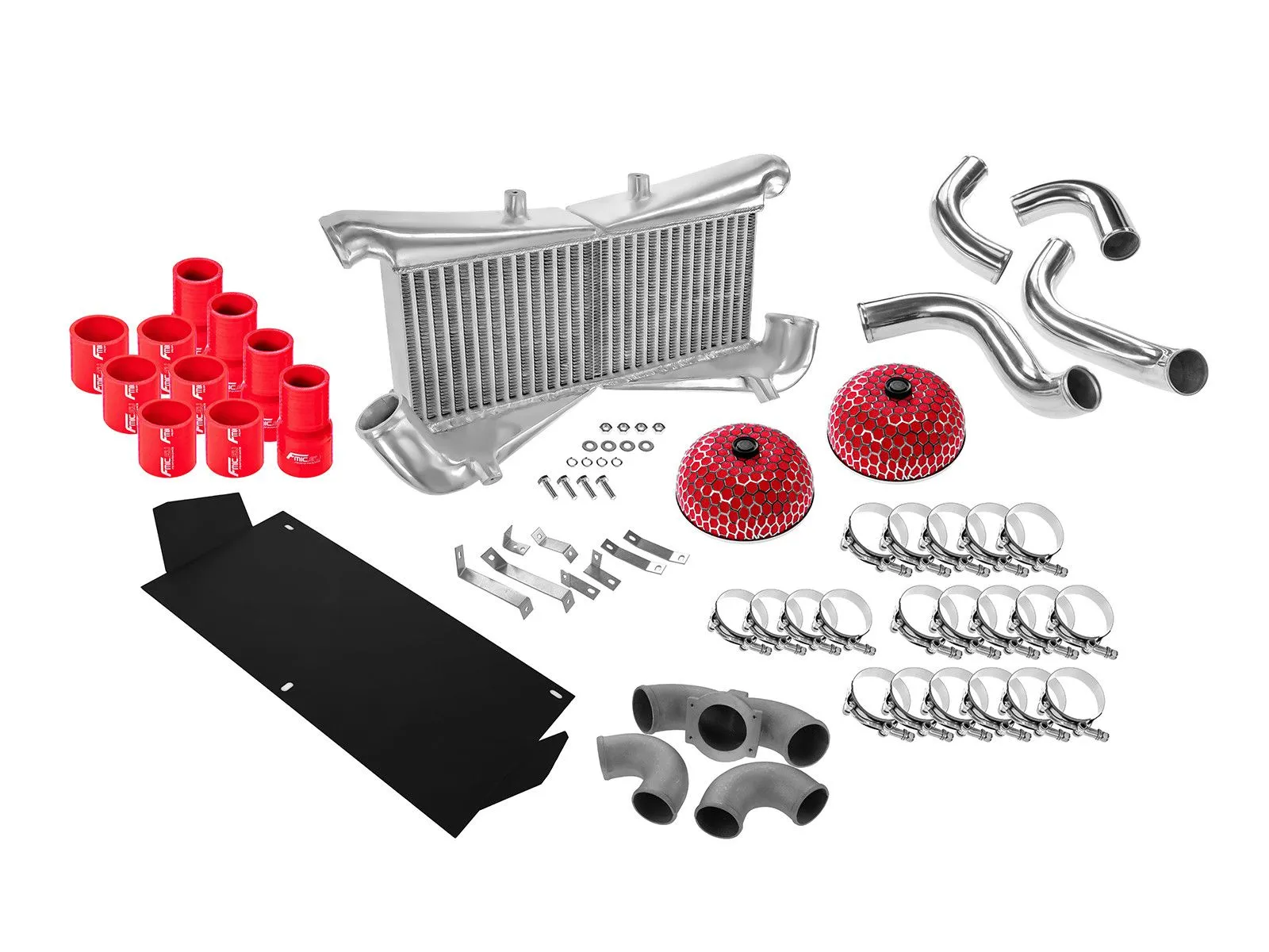Kompletny zestaw intercoolera dedykowany do Nissana 300ZX Twin Turbo Fairlady 90-96 z silnikiem VQ30DETT złożony jest z odpowiednio dociętych i wyprofilowanych rur oraz kolanek silikonowych i aluminiowych, intercooler posiada mocowania do karoserii. Zestaw zawiera wszystkie części niezbędne do prawidłowego montażu intercoolera w samochodzie a także 2 filtry powietrza typu grzybek. Zalecany montaż w warsztacie tuningowym. , wystarczający do mocy 660KM. Posiada bardzo wydajny rdzeń, grube ścianki wykonane z najwyższej jakości polerowanego aluminium, co gwarantuje ogromną wytrzymałość, świetne chłodzenie, a także doskonałe przepływy powietrza (w przeciwieństwie do intercoolerów z samochodów dostawczych nie "zapychają" dolotu). Znakomicie zastępuje seryjny intercooler zwiększając osiągi samochodu. Oferowane na naszych aukcjach intercoolery posiadają dużo gęstszy, naprzemiennie ułożony radiator, co gwarantuje ogromną poprawę chłodzenia! Oprócz tego widoczny wyżej zewnętrzny radiator ma dodatkowo nacinane (wentylowane) żeberka, dzięki czemu znacznie szybciej oddaje swoje ciepło. Kolor - Czerwony