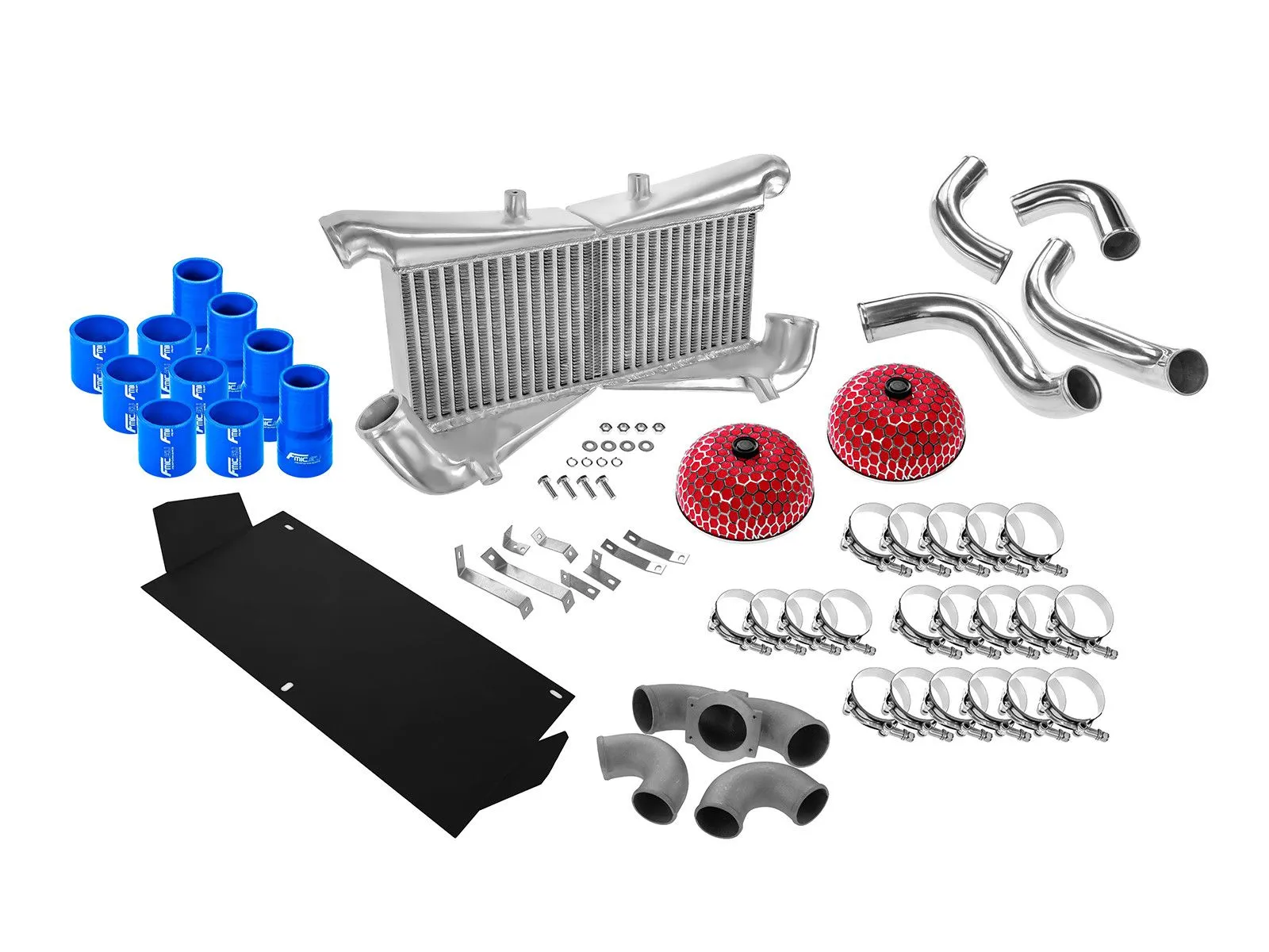 Kompletny zestaw intercoolera dedykowany do Nissana 300ZX Twin Turbo Fairlady 90-96 z silnikiem VQ30DETT złożony jest z odpowiednio dociętych i wyprofilowanych rur oraz kolanek silikonowych i aluminiowych, intercooler posiada mocowania do karoserii. Zestaw zawiera wszystkie części niezbędne do prawidłowego montażu intercoolera w samochodzie a także 2 filtry powietrza typu grzybek. Zalecany montaż w warsztacie tuningowym. , wystarczający do mocy 660KM. Posiada bardzo wydajny rdzeń, grube ścianki wykonane z najwyższej jakości polerowanego aluminium, co gwarantuje ogromną wytrzymałość, świetne chłodzenie, a także doskonałe przepływy powietrza (w przeciwieństwie do intercoolerów z samochodów dostawczych nie "zapychają" dolotu). Znakomicie zastępuje seryjny intercooler zwiększając osiągi samochodu. Oferowane na naszych aukcjach intercoolery posiadają dużo gęstszy, naprzemiennie ułożony radiator, co gwarantuje ogromną poprawę chłodzenia! Oprócz tego widoczny wyżej zewnętrzny radiator ma dodatkowo nacinane (wentylowane) żeberka, dzięki czemu znacznie szybciej oddaje swoje ciepło. Kolor - Niebieski