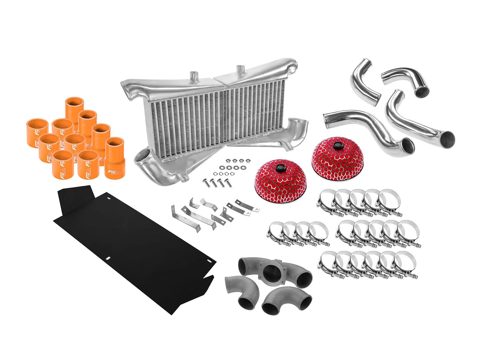 Kompletny zestaw intercoolera dedykowany do Nissana 300ZX Twin Turbo Fairlady 90-96 z silnikiem VQ30DETT złożony jest z odpowiednio dociętych i wyprofilowanych rur oraz kolanek silikonowych i aluminiowych, intercooler posiada mocowania do karoserii. Zestaw zawiera wszystkie części niezbędne do prawidłowego montażu intercoolera w samochodzie a także 2 filtry powietrza typu grzybek. Zalecany montaż w warsztacie tuningowym. , wystarczający do mocy 660KM. Posiada bardzo wydajny rdzeń, grube ścianki wykonane z najwyższej jakości polerowanego aluminium, co gwarantuje ogromną wytrzymałość, świetne chłodzenie, a także doskonałe przepływy powietrza (w przeciwieństwie do intercoolerów z samochodów dostawczych nie "zapychają" dolotu). Znakomicie zastępuje seryjny intercooler zwiększając osiągi samochodu. Oferowane na naszych aukcjach intercoolery posiadają dużo gęstszy, naprzemiennie ułożony radiator, co gwarantuje ogromną poprawę chłodzenia! Oprócz tego widoczny wyżej zewnętrzny radiator ma dodatkowo nacinane (wentylowane) żeberka, dzięki czemu znacznie szybciej oddaje swoje ciepło. Kolor - Pomarańczowy