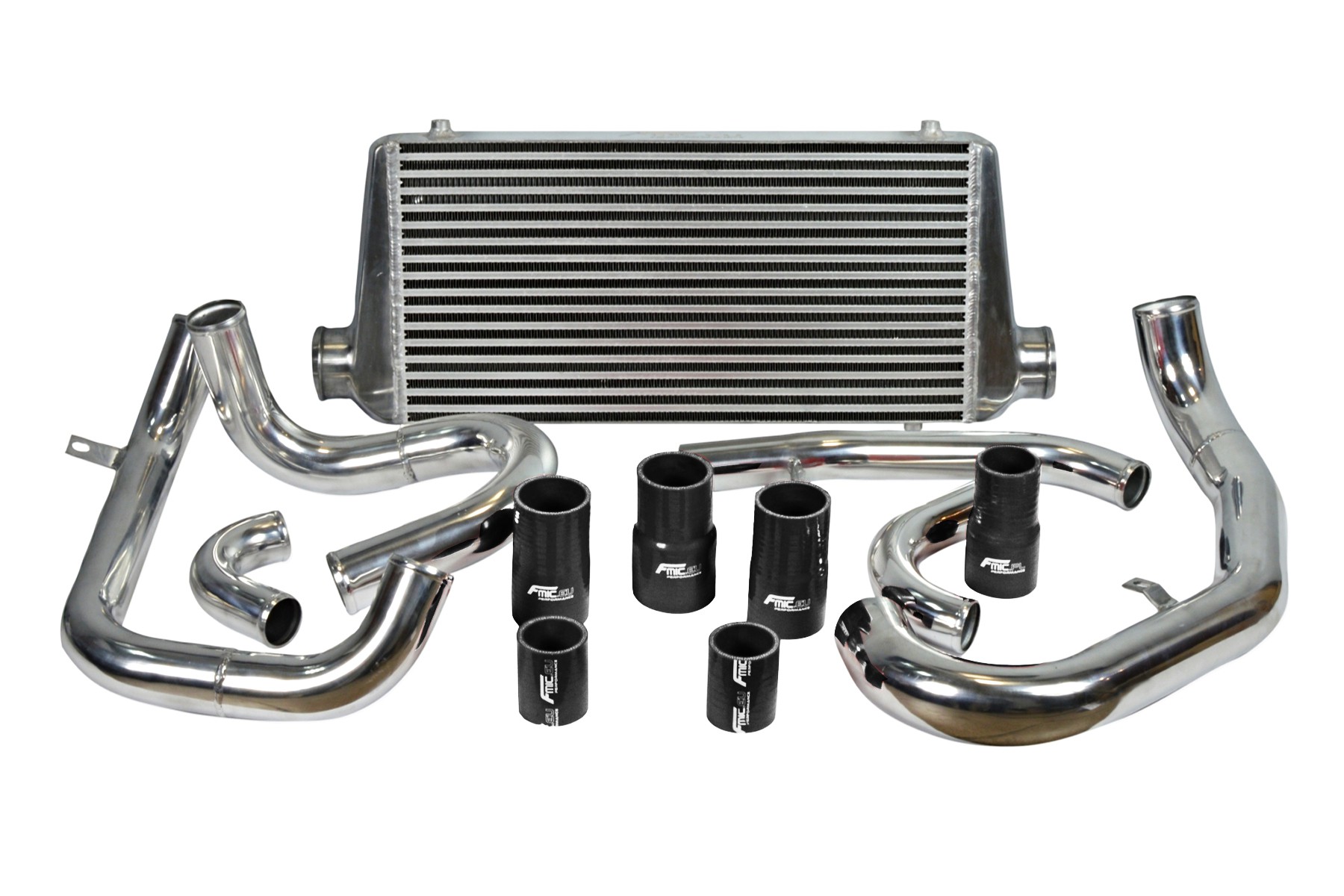 Zestaw dedykowany do Subaru Imprezy 01-06 (GDA, GDB, GDF) WRX/STI złożony jest z odpowiednio dociętych i wyprofilowanych rur oraz kolanek silikonowych i aluminiowych, intercooler posiada mocowania do karoserii. Zestaw zawiera wszystkie części niezbędne do prawidłowego montażu intercoolera w samochodzie. Zalecany montaż w warsztacie tuningowym. Intercooler posiada bardzo wydajny rdzeń o wymiarach 550x230x65mm, grube ścianki wykonane z najwyższej jakości polerowanego aluminium, co gwarantuje ogromną wytrzymałość, świetne chłodzenie, a także doskonałe przepływy powietrza (w przeciwieństwie do intercoolerów z samochodów dostawczych nie "zapychają" dolotu). Znakomicie zastępuje seryjny intercooler zwiększając osiągi samochodu. Nasze intercoolery jedyne na Allegro były testowane do 5 barów - nawet tak duże ciśnienie nie robi na nich żadnego wrażenia. W przeciwieństwie do podobnych intercoolerów z Allegro, wszystkie sprzedawane na naszych aukcjach chłodnice posiadają nowy, dużo wydajniejszy rdzeń drugiego typu! Stary rdzeń widoczny po prawej stronie miał bardzo rzadko ułożone żeberka, do tego tylko w jednym rzędzie (patrząc przez wlot było widać wylot), co skutkowało słabym chłodzeniem - przelatujące nim powietrze nie oddawało całego ciepła. Oferowane na naszych aukcjach intercoolery posiadają dużo gęstszy, naprzemiennie ułożony radiator, co gwarantuje ogromną poprawę chłodzenia! Oprócz tego widoczny wyżej zewnętrzny radiator ma dodatkowo nacinane (wentylowane) żeberka, dzięki czemu znacznie szybciej oddaje swoje ciepło.