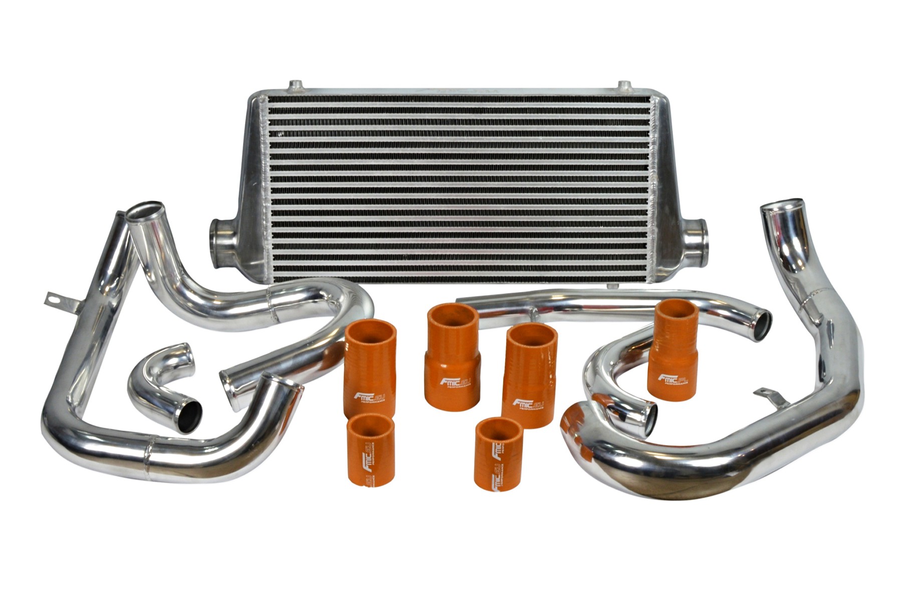 Zestaw dedykowany do Subaru Imprezy 01-06 (GDA, GDB, GDF) WRX/STI złożony jest z odpowiednio dociętych i wyprofilowanych rur oraz kolanek silikonowych i aluminiowych, intercooler posiada mocowania do karoserii. Zestaw zawiera wszystkie części niezbędne do prawidłowego montażu intercoolera w samochodzie. Zalecany montaż w warsztacie tuningowym. Intercooler posiada bardzo wydajny rdzeń o wymiarach 550x230x65mm, grube ścianki wykonane z najwyższej jakości polerowanego aluminium, co gwarantuje ogromną wytrzymałość, świetne chłodzenie, a także doskonałe przepływy powietrza (w przeciwieństwie do intercoolerów z samochodów dostawczych nie "zapychają" dolotu). Znakomicie zastępuje seryjny intercooler zwiększając osiągi samochodu. Nasze intercoolery jedyne na Allegro były testowane do 5 barów - nawet tak duże ciśnienie nie robi na nich żadnego wrażenia. W przeciwieństwie do podobnych intercoolerów z Allegro, wszystkie sprzedawane na naszych aukcjach chłodnice posiadają nowy, dużo wydajniejszy rdzeń drugiego typu! Stary rdzeń widoczny po prawej stronie miał bardzo rzadko ułożone żeberka, do tego tylko w jednym rzędzie (patrząc przez wlot było widać wylot), co skutkowało słabym chłodzeniem - przelatujące nim powietrze nie oddawało całego ciepła. Oferowane na naszych aukcjach intercoolery posiadają dużo gęstszy, naprzemiennie ułożony radiator, co gwarantuje ogromną poprawę chłodzenia! Oprócz tego widoczny wyżej zewnętrzny radiator ma dodatkowo nacinane (wentylowane) żeberka, dzięki czemu znacznie szybciej oddaje swoje ciepło.