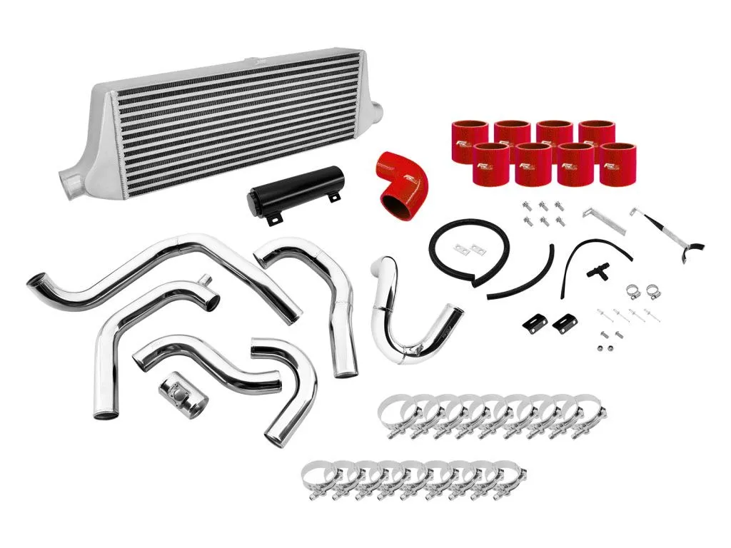 Zestaw dedykowany do Subaru Imprezy WRX/STI 02-07 złożony jest z odpowiednio dociętych i wyprofilowanych rur oraz kolanek silikonowych i aluminiowych, intercooler posiada mocowania do karoserii. Zestaw zawiera wszystkie części niezbędne do prawidłowego montażu intercoolera w samochodzie. Zalecany montaż w warsztacie tuningowym. Intercooler posiada bardzo wydajny rdzeń o wymiarach 640x230x85mm , grube ścianki wykonane z najwyższej jakości polerowanego aluminium, co gwarantuje ogromną wytrzymałość, świetne chłodzenie, a także doskonałe przepływy powietrza (w przeciwieństwie do intercoolerów z samochodów dostawczych nie "zapychają" dolotu). Znakomicie zastępuje seryjny intercooler zwiększając osiągi samochodu. Nasze intercoolery jedyne na Allegro były testowane do 5 barów - nawet tak duże ciśnienie nie robi na nich żadnego wrażenia. W przeciwieństwie do podobnych intercoolerów z Allegro, wszystkie sprzedawane na naszych aukcjach chłodnice posiadają nowy, dużo wydajniejszy rdzeń drugiego typu! Stary rdzeń widoczny po prawej stronie miał bardzo rzadko ułożone żeberka, do tego tylko w jednym rzędzie (patrząc przez wlot było widać wylot), co skutkowało słabym chłodzeniem - przelatujące nim powietrze nie oddawało całego ciepła. Oferowane na naszych aukcjach intercoolery posiadają dużo gęstszy, naprzemiennie ułożony radiator, co gwarantuje ogromną poprawę chłodzenia! Oprócz tego widoczny wyżej zewnętrzny radiator ma dodatkowo nacinane (wentylowane) żeberka, dzięki czemu znacznie szybciej oddaje swoje ciepło.Kolor - Czerwony