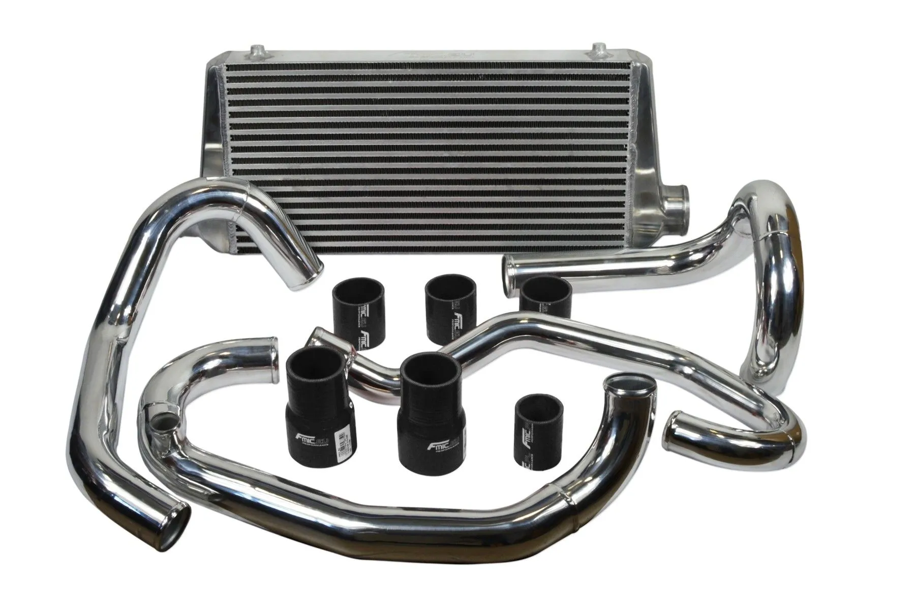 Zestaw dedykowany do Subaru Imprezy 92-00 (GC8) WRX/STI złożony jest z odpowiednio dociętych i wyprofilowanych rur oraz kolanek silikonowych i aluminiowych, intercooler posiada mocowania do karoserii. Zestaw zawiera wszystkie części niezbędne do prawidłowego montażu intercoolera w samochodzie. Zalecany montaż w warsztacie tuningowym. Intercooler posiada bardzo wydajny rdzeń o wymiarach 600x300x76mm , grube ścianki wykonane z najwyższej jakości polerowanego aluminium, co gwarantuje ogromną wytrzymałość, świetne chłodzenie, a także doskonałe przepływy powietrza (w przeciwieństwie do intercoolerów z samochodów dostawczych nie "zapychają" dolotu). Znakomicie zastępuje seryjny intercooler zwiększając osiągi samochodu. Nasze intercoolery jedyne na Allegro były testowane do 5 barów - nawet tak duże ciśnienie nie robi na nich żadnego wrażenia. W przeciwieństwie do podobnych intercoolerów z Allegro, wszystkie sprzedawane na naszych aukcjach chłodnice posiadają nowy, dużo wydajniejszy rdzeń drugiego typu! Stary rdzeń widoczny po prawej stronie miał bardzo rzadko ułożone żeberka, do tego tylko w jednym rzędzie (patrząc przez wlot było widać wylot), co skutkowało słabym chłodzeniem - przelatujące nim powietrze nie oddawało całego ciepła. Oferowane na naszych aukcjach intercoolery posiadają dużo gęstszy, naprzemiennie ułożony radiator, co gwarantuje ogromną poprawę chłodzenia! Oprócz tego widoczny wyżej zewnętrzny radiator ma dodatkowo nacinane (wentylowane) żeberka, dzięki czemu znacznie szybciej oddaje swoje ciepło.Kolor - Czarny