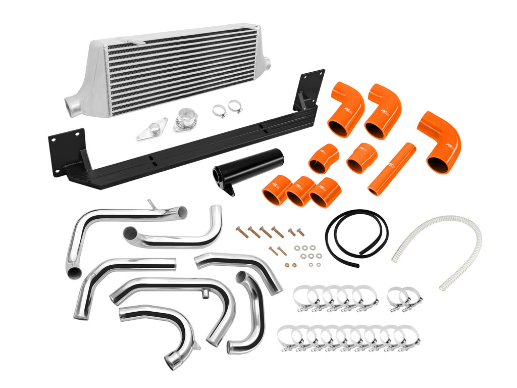 Zestaw dedykowany do Subaru Imprezy 08+ STI złożony jest z odpowiednio dociętych i wyprofilowanych rur oraz kolanek silikonowych i aluminiowych, intercooler posiada mocowania do karoserii. Nasz zestaw jako jedyny w na rynku posiada łączniki silikonowe FMIC.EU z pięciokrotnym oplotem i grubą ścianką co zapewnia dużą wytrzymałość. Zestaw zawiera wszystkie części niezbędne do prawidłowego montażu intercoolera w samochodzie. Zalecany montaż w warsztacie tuningowym. Intercooler posiada bardzo wydajny rdzeń o wymiarach 600x300x76mm , grube ścianki wykonane z najwyższej jakości polerowanego aluminium, co gwarantuje ogromną wytrzymałość, świetne chłodzenie, a także doskonałe przepływy powietrza (w przeciwieństwie do intercoolerów z samochodów dostawczych nie "zapychają" dolotu). Znakomicie zastępuje seryjny intercooler zwiększając osiągi samochodu. Nasze intercoolery jedyne na Allegro były testowane do 5 barów - nawet tak duże ciśnienie nie robi na nich żadnego wrażenia. W przeciwieństwie do podobnych intercoolerów z Allegro, wszystkie sprzedawane na naszych aukcjach chłodnice posiadają nowy, dużo wydajniejszy rdzeń drugiego typu! Stary rdzeń widoczny po prawej stronie miał bardzo rzadko ułożone żeberka, do tego tylko w jednym rzędzie (patrząc przez wlot było widać wylot), co skutkowało słabym chłodzeniem - przelatujące nim powietrze nie oddawało całego ciepła. Oferowane na naszych aukcjach intercoolery posiadają dużo gęstszy, naprzemiennie ułożony radiator, co gwarantuje ogromną poprawę chłodzenia! Oprócz tego widoczny wyżej zewnętrzny radiator ma dodatkowo nacinane (wentylowane) żeberka, dzięki czemu znacznie szybciej oddaje swoje ciepło.