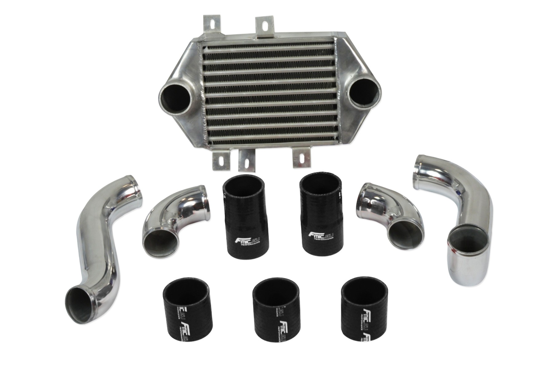Zestaw dedykowany do Toyoty MR2 złożony jest z odpowiednio dociętych i wyprofilowanych rur oraz kolanek silikonowych i aluminiowych, intercooler posiada mocowania do karoserii. Zestaw zawiera wszystkie części niezbędne do prawidłowego montażu intercoolera w samochodzie. Zalecany montaż w warsztacie tuningowym. Posiada bardzo wydajny rdzeń, grube ścianki wykonane z najwyższej jakości polerowanego aluminium, co gwarantuje ogromną wytrzymałość, świetne chłodzenie, a także doskonałe przepływy powietrza (w przeciwieństwie do intercoolerów z samochodów dostawczych nie "zapychają" dolotu). Znakomicie zastępuje seryjny intercooler zwiększając osiągi samochodu. Nasze intercoolery jedyne na Allegro były testowane do 5 barów - nawet tak duże ciśnienie nie robi na nich żadnego wrażenia. W przeciwieństwie do podobnych intercoolerów z Allegro, wszystkie sprzedawane na naszych aukcjach chłodnice posiadają nowy, dużo wydajniejszy rdzeń drugiego typu! Stary rdzeń widoczny po prawej stronie miał bardzo rzadko ułożone żeberka, do tego tylko w jednym rzędzie (patrząc przez wlot było widać wylot), co skutkowało słabym chłodzeniem - przelatujące nim powietrze nie oddawało całego ciepła. Oferowane na naszych aukcjach intercoolery posiadają dużo gęstszy, naprzemiennie ułożony radiator, co gwarantuje ogromną poprawę chłodzenia! Oprócz tego widoczny wyżej zewnętrzny radiator ma dodatkowo nacinane (wentylowane) żeberka, dzięki czemu znacznie szybciej oddaje swoje ciepło.