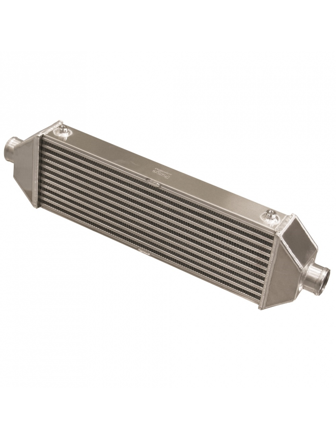 FORGE Uniwersalny Intercooler Type 04 – 2 centralne przyłącza boczne – 680 x 80 x 200 mm Seria 100 – rdzeń 60 mm Doładowanie silnika powoduje wzrost temperatury sprężonego powietrza. Wysoka temperatura może ograniczać moc i zmniejszać efektywność układu doładowania. Zastosowanie intercoolera znacząco redukuje negatywny wpływ podwyższonej temperatury powietrza dolotowego. Uniwersalna gama intercoolerów FORGE Motorsport oferuje szeroki wybór najwyższej jakości konfiguracji, ręcznie wykonywanych i spawanych przez wykwalifikowanych specjalistów. Zapewniają one doskonałe właściwości termiczne, bardzo dobry przepływ, minimalny spadek ciśnienia oraz wysoką sprawność objętościową. Seria uniwersalna FORGE może stanowić idealne rozwiązanie dla pojazdów, dla których nie jest dostępny dedykowany zestaw. W pierwszej kolejności należy określić dostępną przestrzeń montażową i sprawdzić w tabeli wymiarów, który model będzie odpowiedni. Następnie, w zależności od typu (położenie przyłączy, średnice oraz sposób mocowania), należy zaplanować prowadzenie przewodów oraz montaż intercoolera. W większości przypadków instalacja uniwersalnego intercoolera wymaga odpowiedniego poziomu wiedzy technicznej. Seria 100 – wersja Type 04: 2 boczne przyłącza centralne Wymiary rdzenia – L x W x H Type 04/05/06/07/08/09: 500 x 60 x 175 mm Wymiary całkowite – L x W x H Type 04: 680 x 80 x 200 mm Średnica (zewnętrzna średnica przyłączy): 63,5 mm