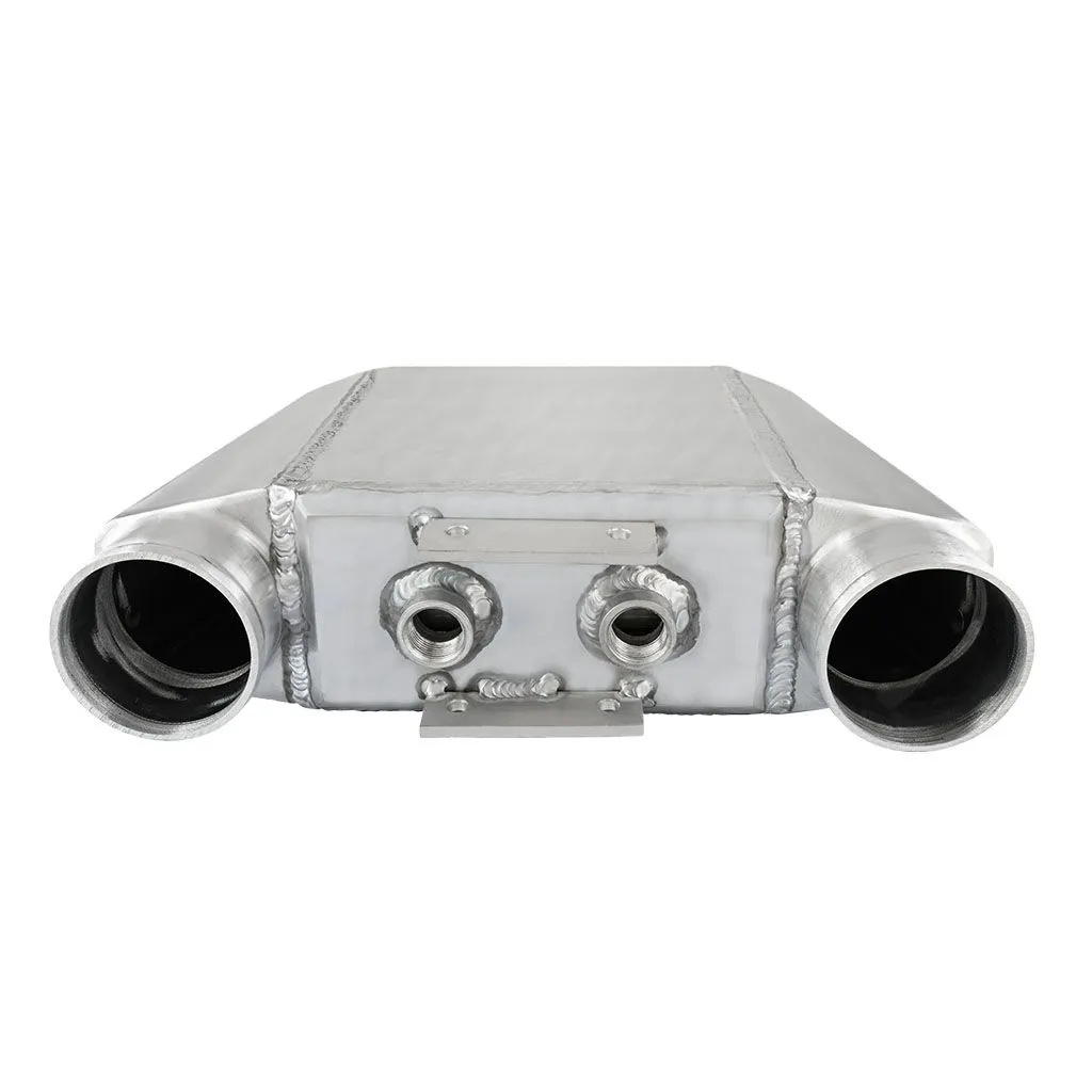 Intercooler wodny JRspec to profesjonalne rozwiązanie dla entuzjastów tuningu i motorsportu, zaprojektowane z wykorzystaniem najnowszych technologii i dostosowane do różnych konfiguracji silnikowych. Jego uniwersalna konstrukcja umożliwia montaż w szerokiej gamie pojazdów, zapewniając znaczącą poprawę wydajności układu dolotowego i osiągów silnika. Kluczowe cechy techniczne Zaawansowana wydajność chłodzenia Intercooler chłodzony cieczą oferuje wyjątkową efektywność w obniżaniu temperatury powietrza dolotowego, niezależnie od warunków otoczenia. Umiejscowienie bliżej turbosprężarki redukuje długość przewodów dolotowych, co przyspiesza reakcję silnika. W porównaniu z tradycyjnymi intercoolerami powietrznymi, czas uzyskania maksymalnego ciśnienia w dolocie jest krótszy o około 15%. Optymalizacja ciśnienia w dolocie Dzięki minimalizacji strat ciśnienia w układzie dolotowym, generowane jest mniejsze obciążenie turbosprężarki, co przekłada się na jej wydłużoną żywotność. Wydajny układ chłodzenia Konstrukcja oparta na wysokowydajnym rdzeniu i płaszczach wodnych pozwala na efektywne odprowadzanie ciepła, zapewniając stabilne temperatury nawet w ekstremalnych warunkach torowych. Precyzyjne wykonanie i trwałość Intercooler wykonany w całości z aluminium charakteryzuje się doskonałą przewodnością cieplną. Spawane płaszcze wodne oraz innowacyjny rdzeń gwarantują niezawodność w wymagających zastosowaniach. Obróbka elementów na maszynach CNC zapewnia najwyższą precyzję montażu oraz idealne dopasowanie przyłączy. JRspec to rozwiązanie, które łączy zaawansowaną technologię z niezawodnością, spełniając oczekiwania nawet najbardziej wymagających użytkowników. Wymiary: Intercooler o wymiarach rdzenia: 250x230x120mm, całkowite wymiary: 420x320x120mm, Średnica zewnętrzna wlot/wylot: 76mm, Gwint portu wodnego: ½ NPT