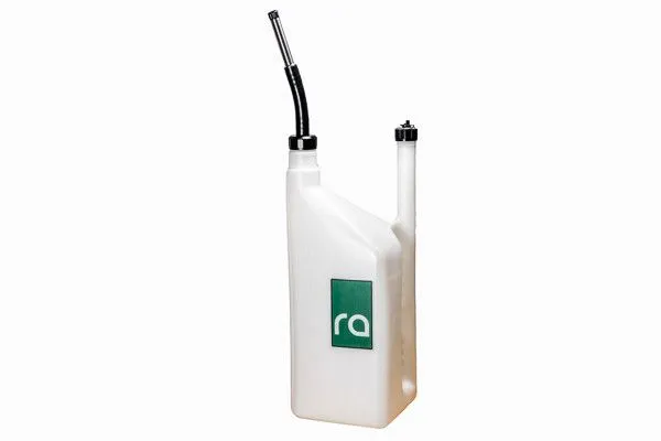 Ten kanister jest skonfigurowany do „standardowego napełniania” („non-dry break”). Jest to idealne rozwiązanie dla wszystkich rodzajów sportów motorowych. Kanister posiada aluminiowe korki wlewu i odpowietrznika. Wewnętrzna średnica przepływu wylewki ze stali nierdzewnej jest zmaksymalizowana, ale nadal kompatybilna ze wszystkimi wlewami paliwa OEM. Korek odpowietrzający posiada 6 różnych wskaźników rodzaju paliwa: (BEZOŁOWIOWE, OŁOWIOWE, METANOL, ETANOL, WSTĘPNIE ZMIESZANE, OLEJ NAPĘDOWY). Małe pokrętło można wkręcić w odpowiedni gwintowany otwór, aby oznaczyć rodzaj paliwa wewnątrz. W celu powolnego, kontrolowanego napełniania można po prostu odblokować plastikową klapkę (na ilustracji). W celu nieco szybszego napełniania można odkręcić całą nasadkę odpowietrzającą (niezalecane). Należy zachować ostrożność. SZYBKOŚĆ PRZEPŁYWU RADIUM Dump Can (standardowe napełnianie) = 5,86 g/min (korek odpowietrzający założony/klapka otwarta) RADIUM Dump Can (standardowe napełnienie) = 6,70 gpm (korek odpowietrzający zdjęty) Kanister na paliwo GENERIC BRAND X = 1,86 g/min (korek otwarty) SPECYFIKACJA Pojemność: 6 galonów (22 litry) Wysokość: 641 mm (25,25") Szerokość: 241 mm (9,5”) Głębokość: 241 mm (9,5”) Średnica zewnętrzna otworu wentylacyjnego: 43 mm (1,675”) Średnica otworu wentylacyjnego: 35 mm (1,375”) Średnica zewnętrzna wylewki (jeśli przycięta): 2,5” lub 3” Przepływ (standardowe napełnienie): 22 l/m (5,86 gpm) maks. Przepływ („dry break”): 97.4 l/m (25,75 gpm) maks. Kolor: półprzezroczysty biały