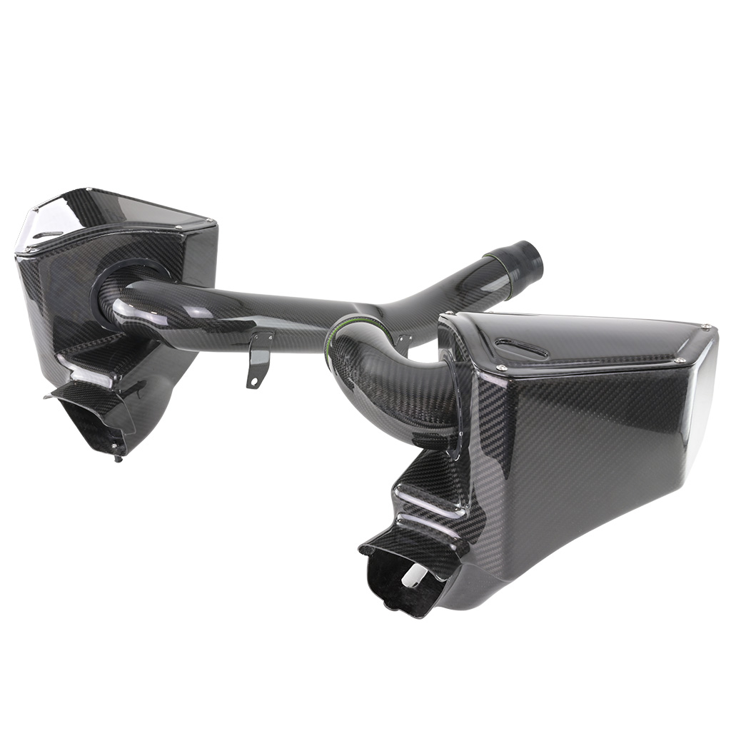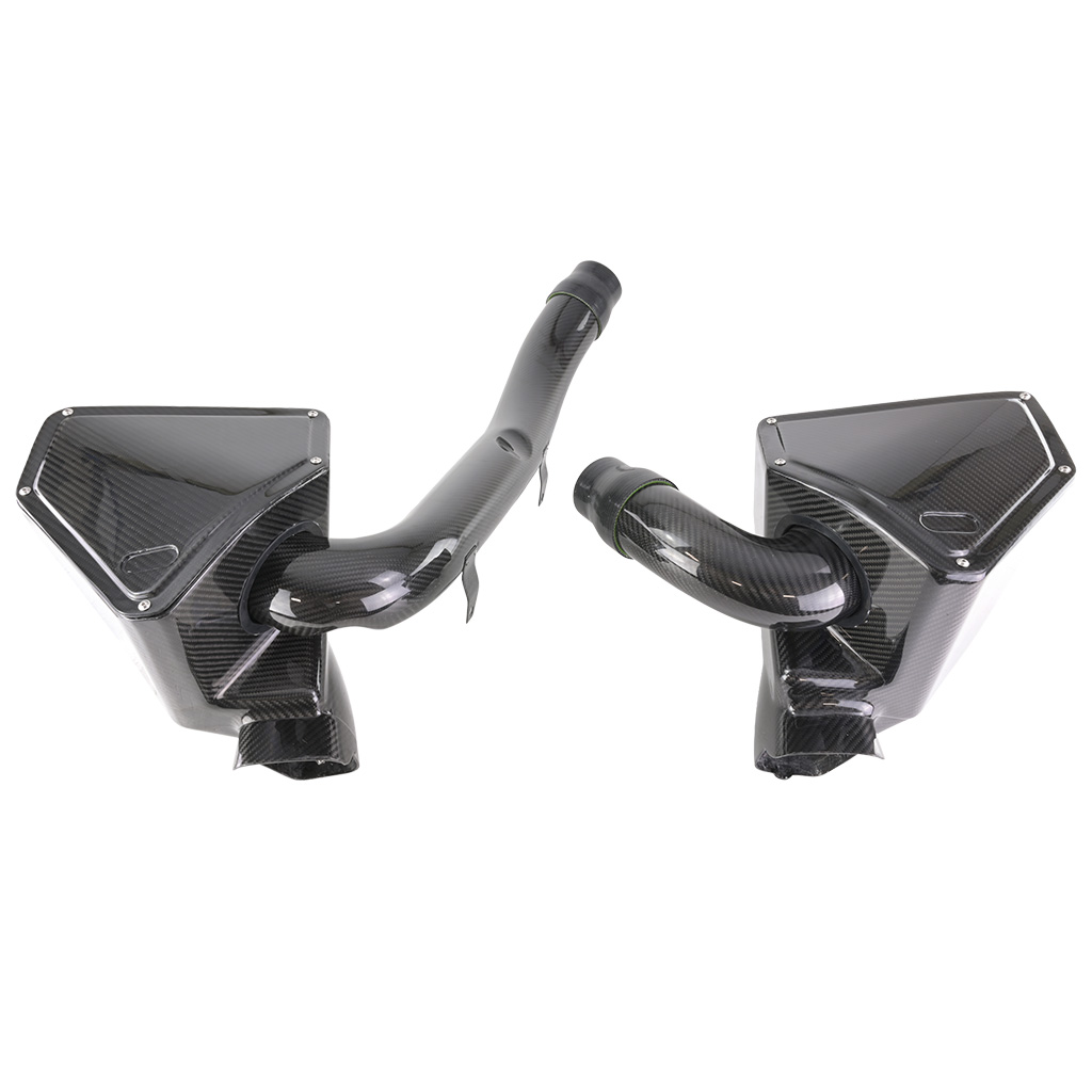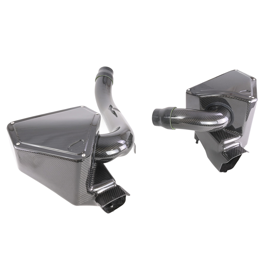 Karbonowy układ dolotowy FMIC.EU BMW G80 G82 M3 M4 S58 3.0T 2020+ Układ dolotowy FMIC.EU to wydajny zestaw opracowany z myślą o poprawie osiągów oraz estetyki komory silnika. Zastosowanie zestawu pozwala znacząco zwiększyć ilość powietrza dostarczanego do silnika, co przekłada się na wyższą moc oraz większą sprawność silnika. Dzięki precyzyjnie zaprojektowanym przewodom i komponentom wykonanym z wysokiej jakości włókna węglowego oraz silikonów, układ charakteryzuje się niskimi oporami przepływu i pełną szczelnością nawet przy wysokim ciśnieniu doładowania. Zestaw nie tylko poprawia parametry pracy jednostki napędowej, ale także nadaje komorze silnika bardziej sportowy i uporządkowany wygląd. Cechy: -Minimalna waga zestawu połączona z wydajnością i unikatowym wyglądem pod maską -Zwiększony przepływ powietrza w porównaniu do seryjnego układu, co przekłada się na wyższą moc -Usprawniony przepływ powietrza i lepsza reakcja przepustnicy -Redukcja efektu turbodziury i płynniejsza dynamika w całym zakresie obrotów -Lepsza elastyczność jednostki napędowej i stabilniejsza praca pod obciążeniem Zestaw zawiera: -Dedykowane rury wykonane z włókna węglowego -Osłony na filtry z włókna węglowego -Filtry stożkowe -Elementy montażowe Zestaw dedykowany do: -M3 G80/ Competition (Sedan) -M3 G81/ Competition (Touring) -M4 G82/ Competition (Coupé) -M4 G83/ Competition (Cabrio)