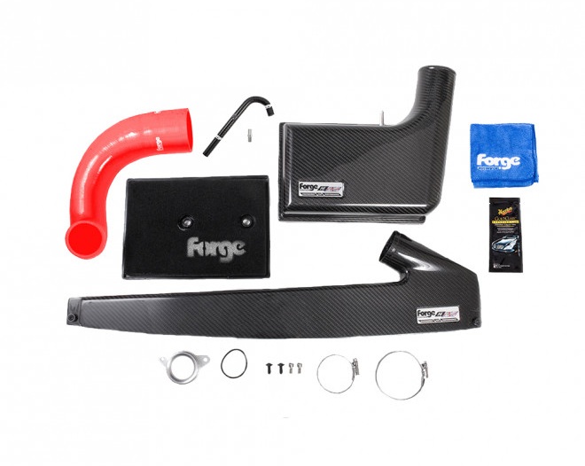 Zestaw dolotowy Forge Motorsport Carbon Direct Intake przeznaczony do Volkswagen Golf Mk7 GTE. Produkt ten idealnie współpracuje z zaworem upustowym FMDV1-GTE (1.2/1.4 TSI Dump Valve). W przypadku zakupu zestawu jako produktu niezależnego, przewód wlotowy do turbiny może opierać się o sąsiednią seryjną rurę doładowania, co może wymagać delikatnego skrócenia końcówki dolotu FMINDK14, aby zapobiec jej zagnieceniu. Dzięki unikalnej, eleganckiej konstrukcji zastosowano obudowę z włókna węglowego, która doskonale komponuje się z komorą silnika, jednocześnie zwiększając moc i moment obrotowy. W zestawie znajduje się również precyzyjnie obrabiana tuleja aluminiowa, wykonana w zakładzie Forge Motorsport w Gloucester (Wielka Brytania), gwarantująca idealne dopasowanie. Projekt Po sukcesie karbonowego dolotu do Golf Mk7, Forge Motorsport rozszerzyło ofertę Hi-Flow, wprowadzając przystępne cenowo rozwiązanie dla rynku 1.4 TSI oraz GTE. Przeprowadzono szeroko zakrojone badania rynku, konsultując się z tunerami oraz właścicielami pojazdów. Zamiast projektować kompletny układ dolotowy z włókna węglowego, zdecydowano, że najlepszym rozwiązaniem będzie karbonowy scoop oraz pokrywa airboxa, współpracujące z seryjną obudową filtra. Aby zapewnić najwyższą jakość, do produkcji zaangażowano jednego z najlepszych producentów włókna węglowego na świecie, dostarczającego komponenty m.in. do Formuły 1, nadwozi samochodów oraz lotnictwa. Formy produkcyjne zostały wykonane metodą CNC z litego aluminium, co pozwala na uzyskanie perfekcyjnego kształtu. Karbon 2x2 twill produkowany jest metodą autoklawową (Autoclave Pre-Preg), zapewniającą idealne przyleganie materiału do formy przy użyciu ciśnienia do 10 barów. Proces ten gwarantuje gęsty, równy i niezwykle wytrzymały splot, wolny od niedoskonałości. Po utwardzeniu żywicy materiał uzyskuje wytrzymałość do 8 razy większą niż stal, przy znacznie niższej masie. Po dopracowaniu elementów karbonowych i silikonowych, Forge skupiło się na kluczowym elemencie – filtracji powietrza. Going with the Flow Po zakończeniu prac nad pokrywą i scoopem, zespół Forge Motorsport opracował przewody oraz filtr. Aby nie ograniczać wydajności nowego układu, nawiązano współpracę z ekspertami w dziedzinie filtracji – Pipercross. Dzięki ponad 25-letniemu doświadczeniu w motorsporcie i rynku OEM, Pipercross zalecił wielowarstwowy filtr piankowy, który idealnie współpracuje z serią Hi-Flow. Zastosowany filtr przepuszcza o 30% więcej powietrza niż seryjny i idealnie pasuje do obudowy. Wysokoprzepływowy silikonowy przewód dolotowy Forge eliminuje restrykcyjne, plastikowe rury OEM i zastępuje je gładkim, wielowarstwowym przewodem silikonowym, poprawiając przepływ powietrza, wydajność i osiągi. Zmiana ta przekłada się na wzrost mocy nawet do 10 KM, co jest znakomitym wynikiem dla modyfikacji typu bolt-on. Przewód silikonowy w zestawie posiada wewnętrzną warstwę z fluorosilikonu, zwiększającą odporność na temperaturę i opary oleju. Najważniejsze cechy Element serii Forge Motorsport Hi-Flow Zwiększony przepływ powietrza i poprawiona wydajność Przyrost mocy do 10 KM Gęsty i wytrzymały splot włókna węglowego 100% carbon fibre, bez dodatku włókna szklanego Produkcja metodą Autoclave Pre-Preg Łatwy montaż Przewody z wyściółką fluorosilikonową Wysokoprzepływowy, czyszczalny filtr powietrza – bez konieczności wymiany Ograniczona dożywotnia gwarancja* * Filtr Pipercross nie jest objęty gwarancją Zawartość zestawu Pokrywa airboxa Forge Motorsport Hi-Flow z włókna węglowego Przedni scoop Forge Motorsport Hi-Flow z włókna węglowego Filtr powietrza Pipercross Zestaw pielęgnacyjny Meguiar’s oraz ściereczka z mikrofibry Forge Motorsport Silikonowy przewód dolotowy o zwiększonej średnicy Silikonowy przewód w kształcie „L” wraz z mocowaniem Zastosowanie: Volkswagen Golf Mk7 GTE Kolor: czerwony