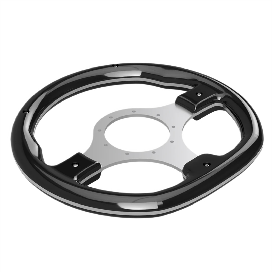 Kierownica w stylu GT3 o średnicy 340mm to projekt stworzony z myślą o właścicielach Forda Mustanga z lat 1968–1973, którzy cenią sobie precyzję prowadzenia, wyścigowy styl i ręczne wykonanie. Produkt pasuje zarówno na oryginalną nabę Forda Mustanga o rozstawie śrub 9×101.5mm, jak i do oryginalnego klaksonu i pierścienia maskującego. Dostępne są cztery rodzaje wykończenia: obszycie alcantarą, obszycie skórą, forged carbon lub lakierowana. Możliwość dostosowania wykończenia Poprawiona jakość prowadzenia auta Wyższa sztywność i wytrzymałość w porównaniu do oryginalnych Precyzja wykonania Produkt w znaczącym stopniu poprawia wrażenia i ergonomię prowadzenia klasycznych Mustangów. Idealnie łączy ona sportowy charakter z oldschoolową elegancją. Użycie wysokiej jakości stopu aluminium PA9 zapewnia wysoką sztywność i wytrzymałość. Rękojeść wykonana w technologii 3D z wykorzystaniem wysoce wytrzymałego kompozytu wzmacnianego włóknem węglowym lub kutego carbonu tzw. „forged carbon”. Druga opcja zapewnia jeszcze wyższą wytrzymałość i niższą masę. Kierownica została zaprojektowana w stylu GT3, z charakterystycznie ściętym dołem, który zapewnia więcej miejsca na nogi i nadaje wnętrzu agresywnego charakteru. Charakterystyczne wybrzuszenia poprawiają chwyt i pewność prowadzenia. Dzięki możliwości wyboru wykończenia – od eleganckiej skóry, przez wyścigową alcantarę, aż po nowoczesny forged carbon – dopasujesz ją do stylu swojego projektu. Możesz też postawić na surowy, techniczny wygląd lakierowanej powierzchni. Cechy produktu Rozstaw montażowy: 9 śrub; Design GT3 z charakterystycznie ściętym dołem – sportowy charakter i więcej miejsca na nogi; Grip – profilowane wycięcia poprawiające pewność chwytu podczas dynamicznej jazdy; Wysoka wytrzymałość: rdzeń wykonywany z wytrzymałego aluminium PA9 (7075) Zestaw zawiera Kierownica Zestaw montażowy Zastosowanie Ford Mustang 1968-1973 Uwagi * Przed zakupem upewnij się, że produkt pasuje do Twojego samochodu.