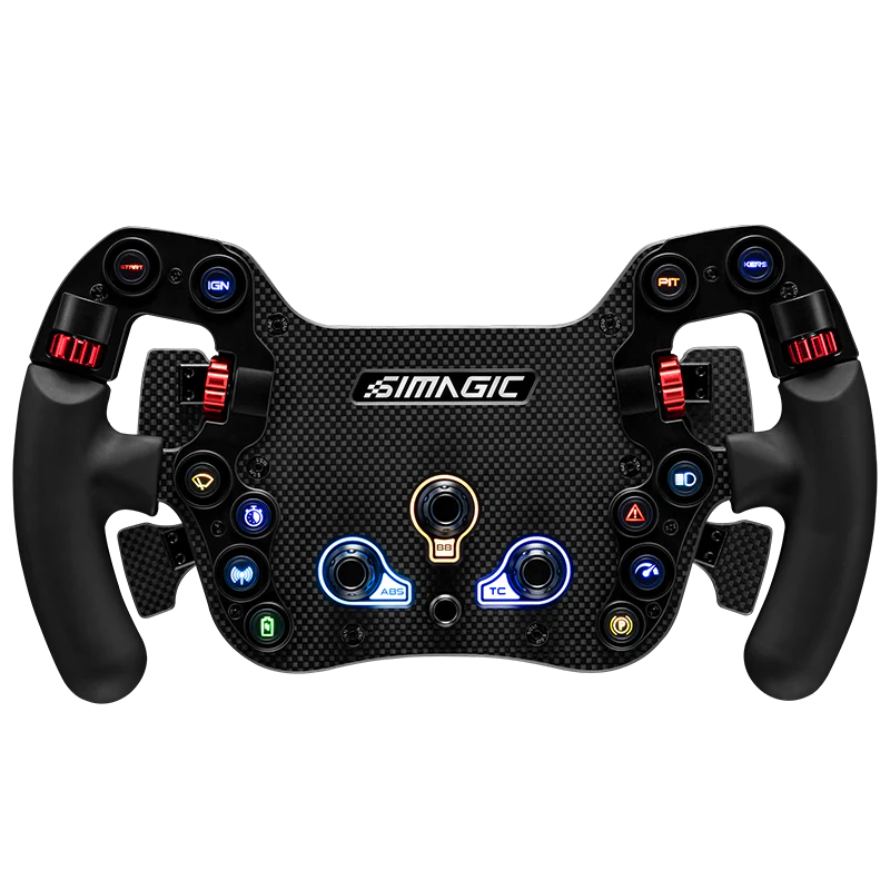 FX Formula Kierownica – wyścig na absolutnym limicie Stworzona, aby zapewnić maksymalnie realistyczne wrażenia z jazdy bolidem. FX Formula została zaprojektowana do jazdy na granicy możliwości – dla kierowców, którzy oczekują precyzji, szybkości reakcji i pełnej kontroli. Konstrukcja z włókna węglowego 290 mm Kierownica 290 mm z włókna węglowego 5 mm wysokiej jakości płytka z włókna węglowego Trwała, sztywna i jednocześnie lekka Zredukowana masa dla lepszego „czucia drogi” Innowacje SIMAGIC Opatentowany moduł łopatek z czujnikami Halla – wyraźne, precyzyjne zmiany biegów i wysoka trwałość Opatentowane miękkie podświetlenie LED (soft glow) – każdy RGB można regulować, światło jest czytelne i nierażące Opatentowany next-gen design przycisków – minimalny skok, maksymalne wyczucie Opatentowane nakładki / naklejki na przyciski – łatwe w aplikacji, pozwalają czytelnie oznaczyć funkcje Imersji nigdy za wiele 12 programowalnych przycisków RGB 3 przyciski–enkodery obrotowe 1 siedmiopozycyjny przełącznik obrotowy (7-way multi-position) 4 enkodery pod kciukiem Opatentowany moduł łopatek Halla Wszystkie funkcje są w zasięgu palców – pełna kontrola i wciągające wrażenia z jazdy. SimPro Manager Next Gen Driver Software: SimPro Manager Konfiguruj zachowanie kierownicy w czasie rzeczywistym – przyciski, enkodery, LED-y i logikę działania dokładnie tak, jak lubisz. Opatentowane miękkie LED-y Opatentowane soft glow LED lights Każde podświetlenie RGB można dostosować Światło jest wyraźne, ale nierażące – także przy długich sesjach Możliwość rozbudowy o łopatki sprzęgła* Kierownica może zostać rozbudowana o łopatki sprzęgła *Dostępne jako osobny model.