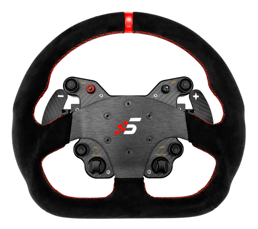 GT1 Typ-D – wyścigowy charakter i maksymalna kontrola Kształt D dla precyzji i ergonomii GT1 Suede D-Type to kierownica stworzona dla kierowców, którzy oczekują stabilności, szybkości reakcji i idealnej ergonomii. Spłaszczony dół (flat-bottom) zapewnia więcej miejsca na nogi, ułatwia pracę z pedałami i daje większą pewność podczas dynamicznej jazdy — niezależnie od tego, czy ścigasz się na torze, driftujesz, czy jedziesz w rajdzie. Alcantara – maksymalny chwyt i wyścigowe czucie Wykończenie z alcantary gwarantuje: wyjątkowo pewny, lekko „klejący” się chwyt, wysoką kontrolę w ciasnych zakrętach, świetne czucie auta przy szybkich korektach, komfort podczas długich sesji. To wybór dla kierowców, którzy chcą w pełni naturalnego, zawodniczego feelingu. Konstrukcja z aluminium CNC – lekkość i sztywność Rdzeń GT1 wykonano z precyzyjnie obrabianego aluminium CNC, dzięki czemu kierownica jest: lekka, bardzo sztywna, gotowa na intensywne obciążenia, błyskawicznie reagująca na Force Feedback. Front z włókna węglowego dopełnia całość, oferując wytrzymałość i profesjonalny wygląd. Zintegrowany panel sterowania GT1 Kierownica posiada komplet wbudowanych elementów sterujących: 4 przyciski, 2 pokrętła obrotowe, 3-stopniowy przełącznik, dedykowany przełącznik oświetlenia. Układ jest ergonomiczny i intuicyjny — każdy element znajduje się w naturalnym zasięgu dłoni. SIMAGIC Quick Release – zmiana kierownicy w sekundę Opatentowany system szybkozłączki: zatrzaskuje się pewnie, eliminuje luzy, nie wymaga żadnych narzędzi, gwarantuje stabilność nawet przy mocnych bazach Direct Drive. Łopatki Halla – pewne i precyzyjne zmiany biegów Wbudowane łopatki wyposażono w czujniki Halla, co zapewnia: szybkie i powtarzalne przełączenia, wyczuwalny punkt aktywacji, natychmiastową reakcję. To mechanizm zaprojektowany do intensywnego, wyścigowego użytkowania. Bezprzewodowa komunikacja – czysty i prosty setup Kierownica współpracuje z bazami SIMAGIC poprzez wbudowane moduły bezprzewodowe — dzięki temu stanowisko jest uporządkowane, bez zbędnych kabli. Gotowa na każdą dyscyplinę GT1 świetnie sprawdza się w: wyścigach torowych, driftcie, rajdach, truck i touring racing, treningach i rozgrywkach ligowych. To wszechstronna kierownica, która rośnie wraz z Twoimi umiejętnościami. Opcjonalne łopatki sprzęgła Model GT1 można opcjonalnie wyposażyć w clutch paddles, aby uzyskać starty rodem z GT i prototypów.