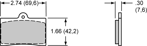 Klocki hamulcowe BP-10 (Street Performance / Racing Pads) Pad#: 6208 Mieszanka: BP-10 Charakterystyka produktu Klocki hamulcowe BP-10 to wysokowydajna mieszanka o średnim współczynniku tarcia, przeznaczona do zastosowań ulicznych oraz torowych. Zapewniają płynną, przewidywalną reakcję hamulca, niski poziom hałasu i pylenia, a także niskie zużycie podczas pracy w niskich i średnich temperaturach. Dzięki zoptymalizowanej formule BP-10 oferują poprawioną skuteczność hamowania, niższy poziom zużycia i czystsze działanie w porównaniu ze standardowymi klockami wymiennymi. Cechy mieszanki BP-10: Średni współczynnik tarcia Płynna, progresywna reakcja Niskie zużycie przy pracy z tarczami żeliwnymi Niskie do średniego zużycie w niższych temperaturach Niski poziom hałasu i pylenia Wysokowydajna mieszanka do jazdy ulicznej i sportowej Zastosowanie Klocki BP-10 łączą codzienny komfort z osiągami torowymi, idealne dla kierowców oczekujących wysokiej skuteczności w różnych warunkach. Rekomendowane dla: Jazdy ulicznej Muscle cars Drag racing Lekkiego i średniego hamowania na nawierzchniach typu dirt (late models, modified) Materiał tarczy (Rotor Material) Kompatybilne z: Stalą Żeliwem Wymiary klocka (Pad Dimensions) Grubość (in): 0.30 Powierzchnia (in²): 3.65 Objętość (in³): 0.63 Wstępnie dotarte (Bedded): Nie Pylenie i hałas (Dust & Noise Ratings) Poziom pylenia: Niski Poziom hałasu: Niski Zakres temperatur i dobór mieszanki Podczas wyboru odpowiedniej mieszanki należy uwzględnić zarówno zakres pracy, jak i wymaganą siłę hamowania: Asfalt i tory wyścigowe: powyżej 1000°F (538°C) Dirt, drag race, street performance: 500–1000°F (260–538°C) W przypadku utraty skuteczności (fade) spowodowanej przegrzaniem zaleca się poprawę chłodzenia, zastosowanie cięższej tarczy lub wybór mieszanki o wyższym zakresie temperaturowym.