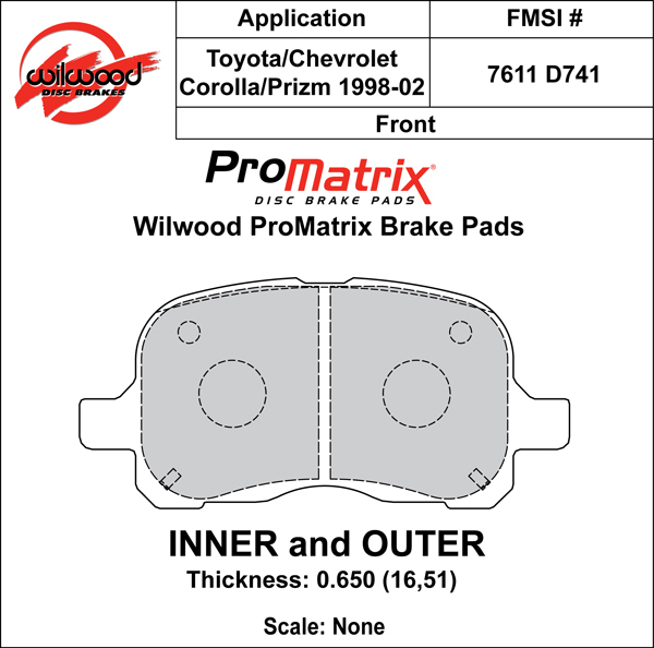 Klocki hamulcowe Street Performance / Racing (D741, ProMatrix) Specyfikacja produktu Numer klocka: D741 Mieszanka: PM – ProMatrix Wymiary klocka (Pad Dimensions) Grubość (in): 0.65 Powierzchnia (in²): — Objętość (in³): — Wstępne dotarcie (Bedded): Nie Pylenie i hałas (Dust & Noise Ratings) Poziom pylenia: niski do umiarkowanego Poziom hałasu: niski Właściwości mieszanki PM – ProMatrix Średni współczynnik tarcia oraz szeroki zakres efektywnej temperatury pracy Płynne i przewidywalne narastanie siły hamowania Średnie zużycie w wysokich temperaturach Wysokowydajna mieszanka do jazdy ulicznej i torowej, o wyższym tarciu i szerszym zakresie pracy niż BP-10 Cicha praca oraz zmniejszone pylenie względem materiałów OE Zastosowanie Jazda uliczna Autocross Track day Materiały tarcz Stal Żeliwo Informacje techniczne Dobór klocków zależy od wymaganego zakresu temperatur pracy i wartości współczynnika tarcia niezbędnego do utrzymania skutecznego hamowania. W wyścigach asfaltowych zwykle stosuje się mieszanki działające powyżej 1000°F, natomiast w drag racingu, dirt track i street performance typowe temperatury wynoszą 500–1000°F. Rzeczywiste wartości mogą różnić się w zależności od warunków, dlatego mają one charakter orientacyjny. Najbardziej wiarygodnym wskaźnikiem pozostaje zachowanie układu hamulcowego w warunkach torowych. W przypadku fade’u spowodowanego przegrzaniem warto rozważyć poprawę chłodzenia, zastosowanie cięższej tarczy lub wybór mieszanki o wyższym zakresie temperatur.
