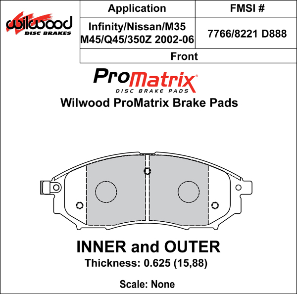Klocki hamulcowe PM - ProMatrix (Street Performance / Racing Pads) Pad#: D888 Mieszanka: PM - ProMatrix Charakterystyka produktu Klocki hamulcowe PM - ProMatrix to wysokowydajna mieszanka o średnim współczynniku tarcia, zaprojektowana z myślą o użytkowaniu zarówno na drodze, jak i na torze. Zapewniają płynne i przewidywalne hamowanie, a ich tarcie wzrasta wraz ze wzrostem temperatury, co przekłada się na stabilne osiągi w całym zakresie pracy. Mieszanka charakteryzuje się umiarkowanym zużyciem w wysokich temperaturach, niskim poziomem hałasu oraz ograniczonym pyleniem, dzięki czemu oferuje komfort użytkowania przy jednoczesnym zachowaniu sportowej skuteczności. W porównaniu do mieszanki BP-10, zapewnia większy zakres temperaturowy i wyższy współczynnik tarcia, co sprawia, że doskonale sprawdza się w autach sportowych i podczas jazdy torowej. Cechy mieszanki PM - ProMatrix: Średni współczynnik tarcia Wysoka skuteczność w szerokim zakresie temperatur Płynna reakcja pedału hamulca Umiarkowane zużycie w wysokiej temperaturze Niska emisja pyłu i hałasu Zastosowanie Jazda uliczna (Street) Autocross Track Day Materiał tarczy (Rotor Material) Stal Żeliwo Wymiary klocka (Pad Dimensions) Grubość (in): 0.625 Powierzchnia (in²): — Objętość (in³): — Wstępnie dotarte (Bedded): Nie Pylenie i hałas (Dust & Noise Ratings) Poziom pylenia: Niski do umiarkowanego Poziom hałasu: Niski Uwagi dotyczące doboru mieszanki Dobór odpowiednich klocków hamulcowych powinien uwzględniać zakres temperatur pracy oraz wartość współczynnika tarcia. Dla torowych zastosowań asfaltowych rekomendowane są mieszanki działające powyżej 1000°F (538°C), natomiast dla jazdy ulicznej, drag race i dirt track – w zakresie 500–1000°F (260–538°C). W przypadku wystąpienia fade’u (utraty skuteczności hamowania) spowodowanego przegrzaniem, zaleca się poprawę chłodzenia, użycie cięższych rotorów lub wybór mieszanki o wyższym zakresie temperaturowym.