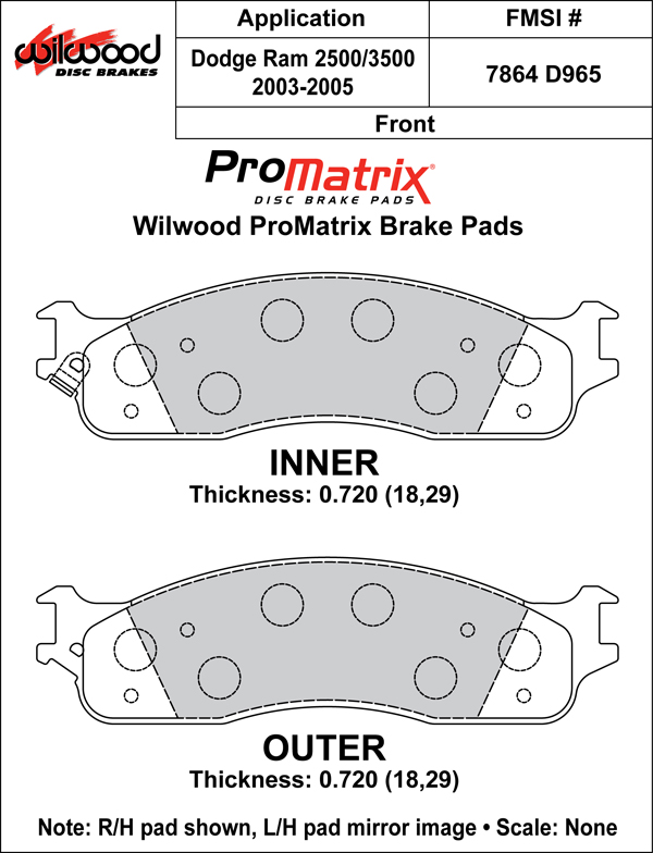 Klocki hamulcowe Street Performance / Racing (D965, ProMatrix) Specyfikacja produktu Numer klocka: D965 Mieszanka: PM – ProMatrix Wymiary klocka (Pad Dimensions) Grubość (in): 0.72 Powierzchnia (in²): — Objętość (in³): — Wstępne dotarcie (Bedded): Nie Pylenie i hałas (Dust & Noise Ratings) Poziom pylenia: niski do umiarkowanego Poziom hałasu: niski Właściwości mieszanki PM – ProMatrix Średni współczynnik tarcia oraz szeroki, efektywny zakres temperatur charakterystyczny dla mieszanek średniotemperaturowych Płynne, kontrolowane narastanie siły hamowania wraz ze wzrostem temperatury Średnia odporność na zużycie w warunkach wysokiej temperatury Mieszanka wysokowydajna do jazdy ulicznej i torowej, oferująca wyższe tarcie i szerszy zakres pracy niż BP-10 Cicha praca i niższe pylenie niż w przypadku materiałów OE Zastosowanie Jazda uliczna Autocross Track day Materiały tarcz Stal Żeliwo Informacje techniczne Wybór właściwych klocków hamulcowych wymaga uwzględnienia temperatur roboczych oraz współczynnika tarcia niezbędnego do utrzymania skuteczności hamowania. W wyścigach asfaltowych stosuje się zwykle mieszanki działające powyżej 1000°F, natomiast w dirt track, drag race i street performance typowy zakres wynosi 500–1000°F. Podane wartości są orientacyjne — rzeczywiste temperatury mogą znacząco różnić się w zależności od warunków otoczenia, masy pojazdu, stylu jazdy czy rodzaju toru. Najpewniejszą metodą oceny odpowiedniej mieszanki pozostaje analiza jej zachowania podczas jazdy torowej. W przypadku wystąpienia fade spowodowanego przegrzaniem niezbędne może być zwiększenie chłodzenia, użycie cięższej tarczy lub wybór mieszanki o wyższej odporności termicznej.