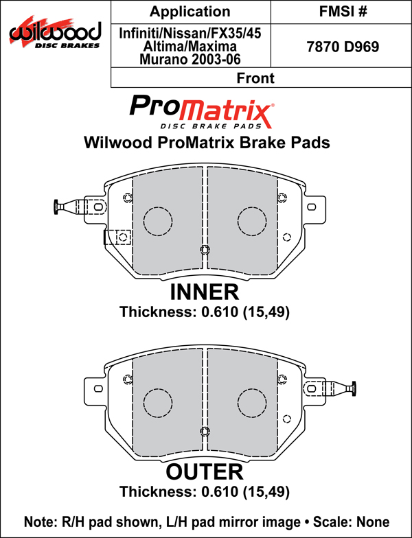 Klocki hamulcowe Street Performance / Racing (D969, ProMatrix) Specyfikacja produktu Numer klocka: D969 Mieszanka: PM – ProMatrix Wymiary klocka (Pad Dimensions) Grubość (in): 0.61 Powierzchnia (in²): — Objętość (in³): — Wstępne dotarcie (Bedded): Nie Pylenie i hałas (Dust & Noise Ratings) Poziom pylenia: niski do umiarkowanego Poziom hałasu: niski Właściwości mieszanki PM – ProMatrix Średni współczynnik tarcia oraz szeroki zakres efektywnej pracy temperatur typowy dla mieszanek średniotemperaturowych Płynne i przewidywalne narastanie siły hamowania wraz ze wzrostem temperatury Średnia odporność na zużycie w warunkach wysokiej temperatury Wysokowydajna mieszanka przeznaczona do jazdy ulicznej i torowej, oferująca wyższe tarcie i szerszy zakres temperatur niż BP-10 Cicha praca i obniżona emisja pyłu w porównaniu z materiałami OE Zastosowanie Jazda uliczna Autocross Track day Materiały tarcz Stal Żeliwo Informacje techniczne Wybór klocków hamulcowych wymaga uwzględnienia zakresu temperatur pracy oraz odpowiedniego współczynnika tarcia, który zapewni skuteczność hamowania. W wyścigach asfaltowych zwykle stosuje się mieszanki pracujące powyżej 1000°F, natomiast w dirt track, drag race i zastosowaniach street performance najczęściej występują temperatury 500–1000°F. Podane przedziały są orientacyjne — rzeczywista temperatura hamulców zależy od czynników takich jak masa pojazdu, styl jazdy czy warunki otoczenia. Najlepszym sposobem oceny właściwego doboru mieszanki pozostaje obserwacja jej zachowania podczas jazdy torowej. W przypadku wystąpienia fade spowodowanego przegrzaniem pomocne może być zwiększenie chłodzenia, zastosowanie cięższej tarczy lub wybór mieszanki przeznaczonej do wyższych temperatur.