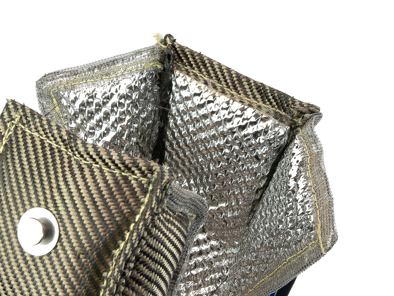 Koc na turbo FMIC.Pro to profesjonalny produkt z zupełnie nowej, innowacyjnej serii termoizolacji. Pierwsza, wewnętrzna warstwa wykonana jest z inconelu, który dzięki odporności na utlenianie i korozję znajduje zastosowanie w przemyśle lotniczym, a jego temperatura topnienia sięga aż 1300’C. Wypełnienie koca stanowi gruba warstwa wełny ceramicznej, która skutecznie zatrzymuje temperaturę, a całość obszyta jest materiałem typu magma, znajdującego zastosowanie w bandażach termoizolacyjnych, dodatkowo przeplatanym z włóknami węglowymi (carbon fiber). Użycie warstwy z inconelu wymusiło zastosowania siatki nierdzewnej do obszycia koca, co dodatkowo wpływa na jego trwałość. Dzięki takiemu połączeniu, mimo stałego kontaktu z temperaturami przekraczającymi 1000’C, koc FMIC.Pro stanowi znakomitą barierę termiczną, nie odbarwia się, a po demontażu pozostaje elastyczny i nadaje się do ponownego założenia.