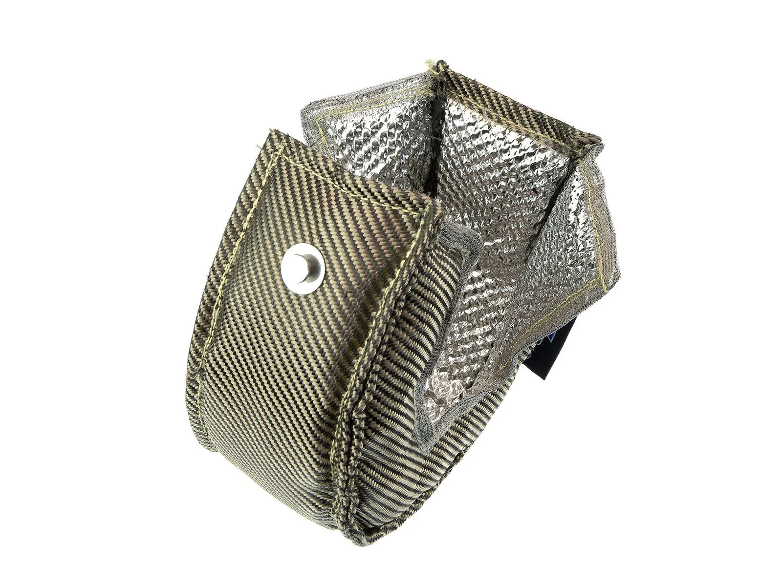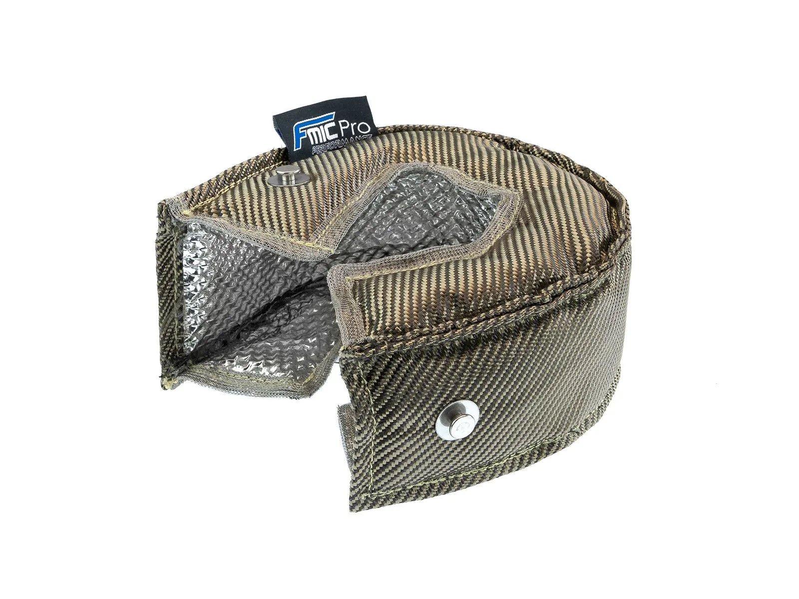 FMIC.Pro Inconel Magma Carbon fiber Koc na turbo FMIC.Pro to profesjonalny produkt z zupełnie nowej, innowacyjnej serii termoizolacji. Pierwsza, wewnętrzna warstwa wykonana jest z inconelu, który dzięki odporności na utlenianie i korozję znajduje zastosowanie w przemyśle lotniczym, a jego temperatura topnienia sięga aż 1300’C. Wypełnienie koca stanowi gruba warstwa wełny ceramicznej, która skutecznie zatrzymuje temperaturę, a całość obszyta jest materiałem typu magma, znajdującego zastosowanie w bandażach termoizolacyjnych, dodatkowo przeplatanym z włóknami węglowymi (carbon fiber). Użycie warstwy z inconelu wymusiło zastosowania siatki nierdzewnej do obszycia koca, co dodatkowo wpływa na jego trwałość. Dzięki takiemu połączeniu, mimo stałego kontaktu z temperaturami przekraczającymi 1000’C, koc FMIC.Pro stanowi znakomitą barierę termiczną, nie odbarwia się, a po demontażu pozostaje elastyczny i nadaje się do ponownego założenia. Termoizolacja z serii FMIC.Pro może być stosowane w ekstremalnych warunkach, dzięki czemu jest wykorzystywana w profesjonalnych samochodach wyścigowych. Znakomicie obniża temperaturę pod maską, co korzystnie wpływa na pracę silnika i elementy układu chłodzenia, dodatkowo zwiększając energię wylotową spalin. Odporność temperaturowa: 1250’C Rozmiar muszli turbo: T4 Warstwa wewnętrzna: Inconel Warstwa wypełniająca: Wełna ceramiczna Warstwa zewnętrzna: Magma przeplatana włóknem węglowym Materiał obszycia krawędzi: Stal nierdzewna