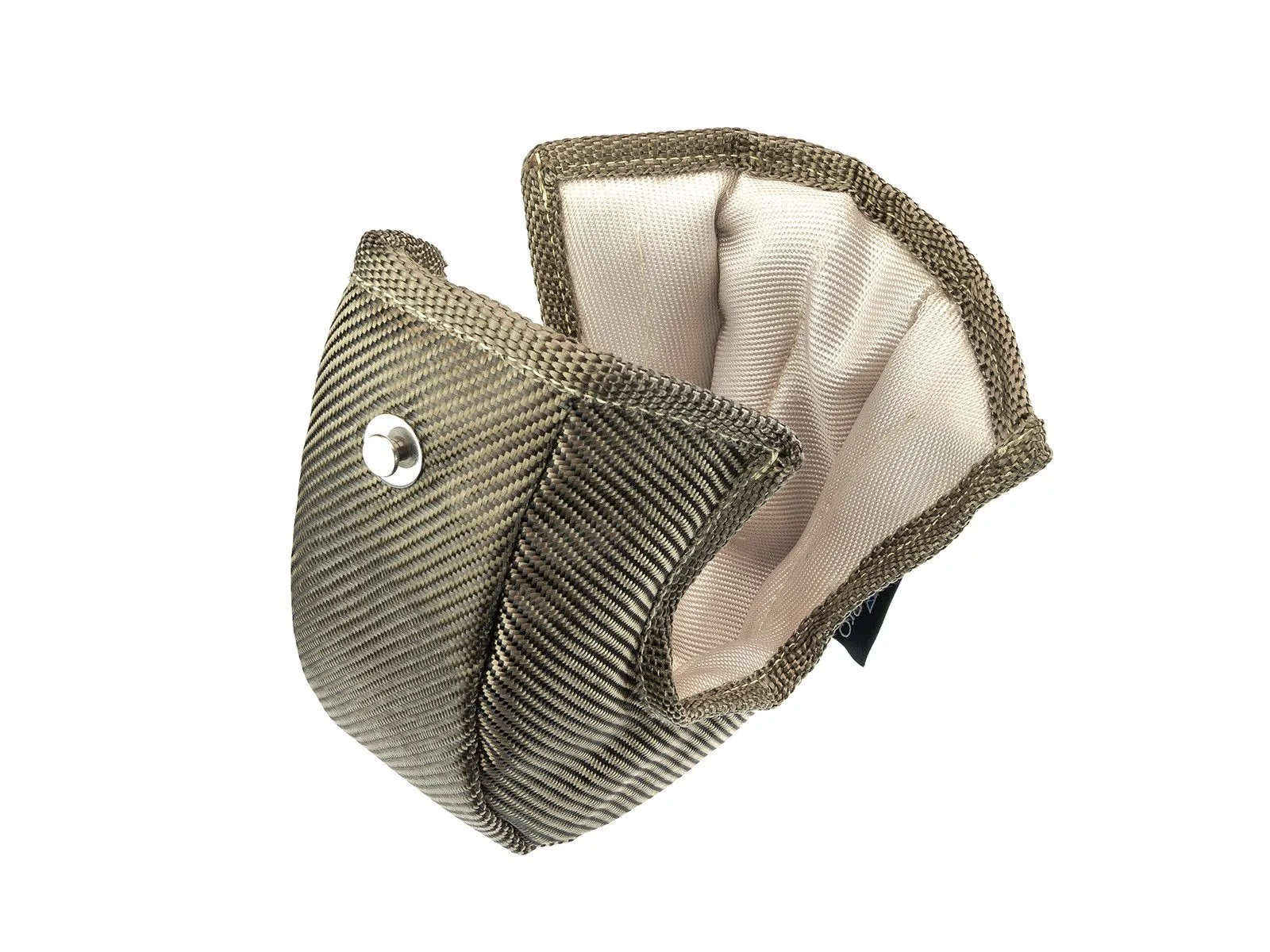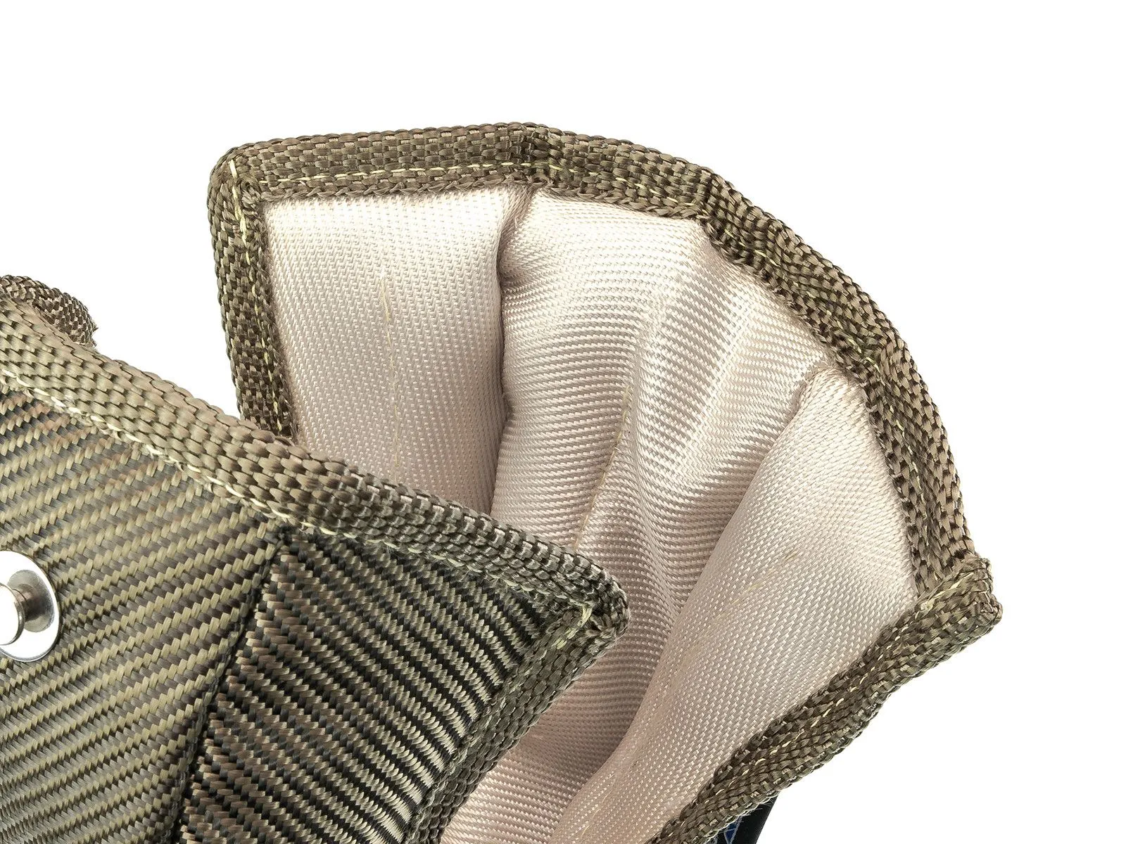 FMIC.Pro Magma Carbon fiber Koc na turbo FMIC.Pro to profesjonalny produkt z zupełnie nowej, innowacyjnej serii termoizolacji. Pierwsza, wewnętrzna warstwa wykonana jest z materiału, który dzięki wysokiej zawartości ditlenku krzemu, bez problemu poradzi z rozgrzaną do czerwoności muszlą wydechową turbosprężarki. Wypełnienie koca stanowi gruba warstwa wełny ceramicznej, która skutecznie zatrzymuje temperaturę, a całość obszyta jest materiałem typu magma, znajdującego zastosowanie w bandażach termoizolacyjnych, dodatkowo przeplatanym z włóknami węglowymi (carbon fiber). Dzięki takiemu połączeniu, mimo stałego kontaktu z temperaturami przekraczającymi 1000’C, koc FMIC.Pro stanowi znakomitą barierę termiczną, nie odbarwia się, a po demontażu pozostaje elastyczny i nadaje się do ponownego założenia. Termoizolacja z serii FMIC.Pro może być stosowane w ekstremalnych warunkach, dzięki czemu jest wykorzystywana w profesjonalnych samochodach wyścigowych. Znakomicie obniża temperaturę pod maską, co korzystnie wpływa na pracę silnika i elementy układu chłodzenia, dodatkowo zwiększając energię wylotową spalin. Odporność temperaturowa: 1100’C Rozmiar muszli turbo: T4 Warstwa wewnętrzna: Materiał o dużej zawartości ditlenku krzemionki Warstwa wypełniająca: Wełna ceramiczna Warstwa zewnętrzna: Magma przeplatana włóknem węglowym Materiał obszycia krawędzi: Magma