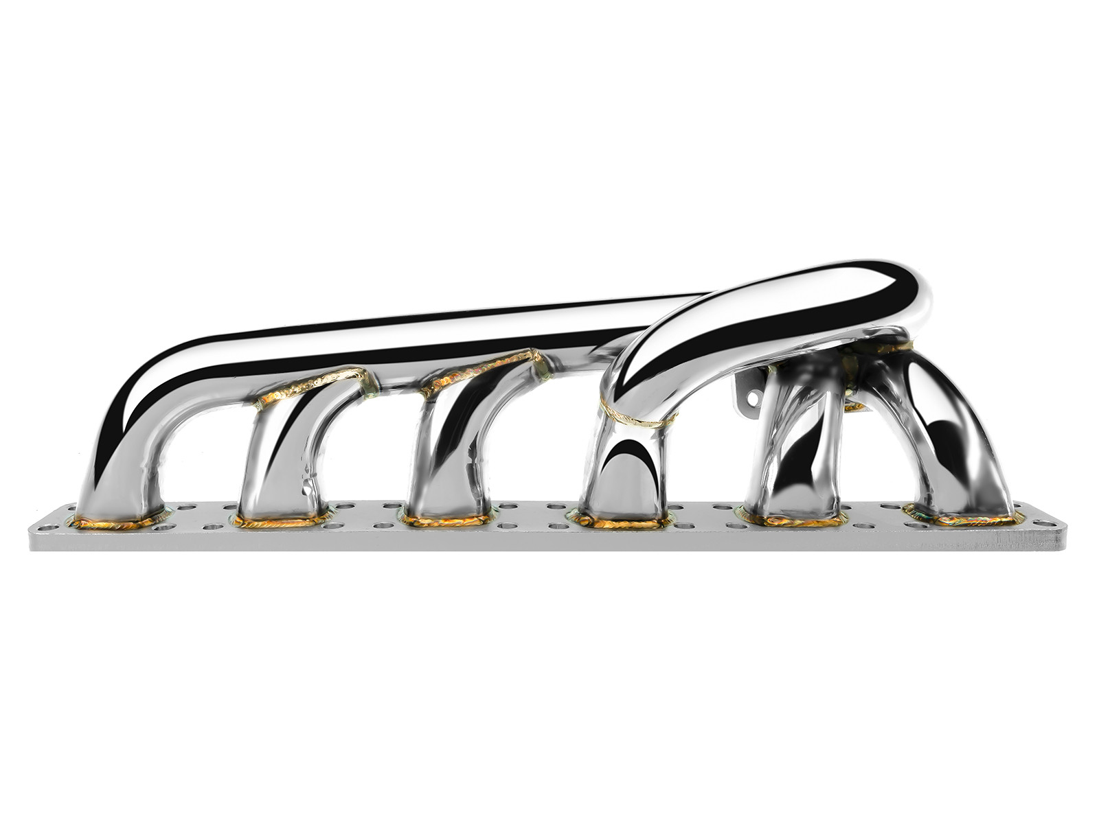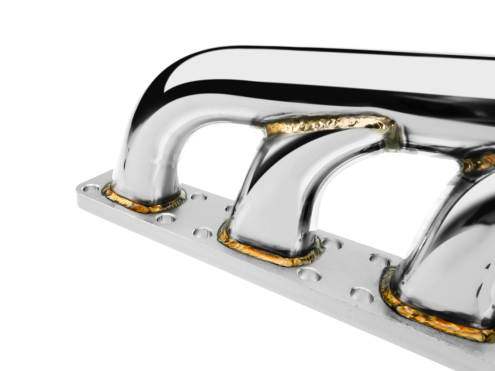 Kolektor wydechowy wykonany z wysokogatunkowej stali nierdzewnej, flansza o grubości 10mm precyzyjnie wycięta w technologii CNC. Kolektor spawany metodą TIG, co zapewni estetykę łączeń i ich dużą wytrzymałość. Poprawione względem seryjnych przepływy podnoszą moc i moment obrotowy silnika, dodając charakterystycznego, rasowego brzmienia.