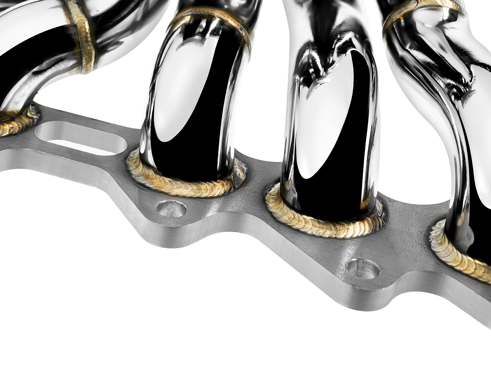 Kolektor wydechowy FMIC.Pro wykonany ze stali nierdzewnej 321, która dzięki stabilizowaniu tytanem zapewnia znacznie lepsze parametry, niż podobne kolektory wykonane ze stali gatunku 304. Mniejsze pełzanie materiału przy wysokich temperaturach oraz dużo wyższa odporność na agresywne środowisko spalin znacznie redukują podatność na pękanie czy korozję. Dodatkowo użycie giętych runnerów zredukowało liczbę spawanych elementów łączących flansze silnika i turbo, co również ma znaczny wpływ na trwałość kolektora. Dzięki znakomitemu spasowaniu średnic runnerów do otworów obu flansz, został idealnie zachowany przepływ spalin bez żadnych zwężeń. Perfekcyjnie wykonane zejścia w szyszkę gwarantują szybki spool turbosprężarki, w czym pomaga również budowa typu Twin Scroll. Kolektor jest przygotowany do stosowania zarówno z jednym, jak i dwoma zewnętrznymi zaworami wastegate.