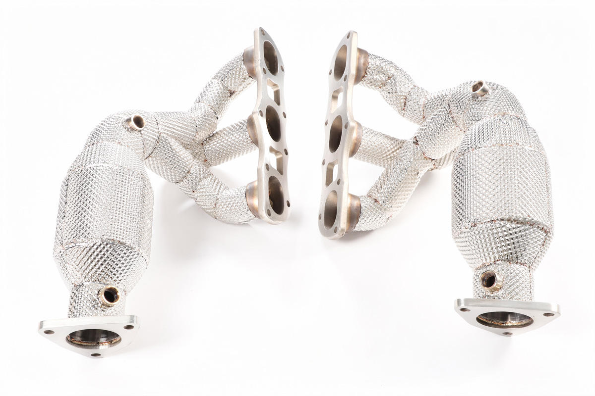 Kolektory Wydechowe FMIC.Pro Porsche 911 991.1 Carrera S 3.4 3.8 2012-2016 Sportowe kolektory wydechowe FMIC.Pro to zaawansowana modyfikacja układu wydechowego. Zastosowanie przedłużonej konstrukcji znacząco poprawia przepływ spalin, co przekłada się na realny wzrost mocy, momentu obrotowego oraz szybszą reakcję silnika. Kolektor wykonany jest z wysokogatunkowej stali nierdzewnej 304, odpornej na ekstremalne temperatury i korozję. Precyzyjnie wycinane flansze CNC o grubości 10 mm oraz spawy TIG gwarantują idealne dopasowanie, szczelność i wieloletnią trwałość – zarówno w aucie ulicznym, jak i w projektach tuningowych. Dzięki zoptymalizowanej średnicy rur oraz gładkim gięciom, kolektor skutecznie eliminuje fabryczne ograniczenia wydechu, nadając silnikowi głębsze, rasowe i sportowe brzmienie, bez utraty kultury pracy. Osłona termiczna (heat shield) montowana na kolektorze wydechowym- jej zadaniem jest ograniczenie promieniowania ciepła do komory silnika. Chroni sąsiadujące elementy (wiązki, przewody, plastikowe osłony) przed nadmierną temperaturą. Cechy produktu: -Konstrukcja zapewniająca maksymalny przepływ spalin -Osłona termiczna (heat shield) ograniczająca emisję ciepła -Stal nierdzewna SS304 odporność na temperaturę i korozję -Flansze CNC 10 mm -Spawany metodą TIG – wysoka wytrzymałość i estetyka -Brak zwężeń, płynny przepływ -Średnica kolektora: 4.5” / 114 mm -Miejsce na sondy O2 – kompatybilność z seryjną elektroniką -Sportowe, głębokie brzmienie wydechu Dedykowany do silników: 3.4 / 3.8-litrowy boxer H6 Dopasowanie: -Carrera 991.1 3.4 L H6 ~350 KM 2012-2015/2016 -Carrera S 991.1 3.8 L H6 ~400 KM 2012-2015/2016