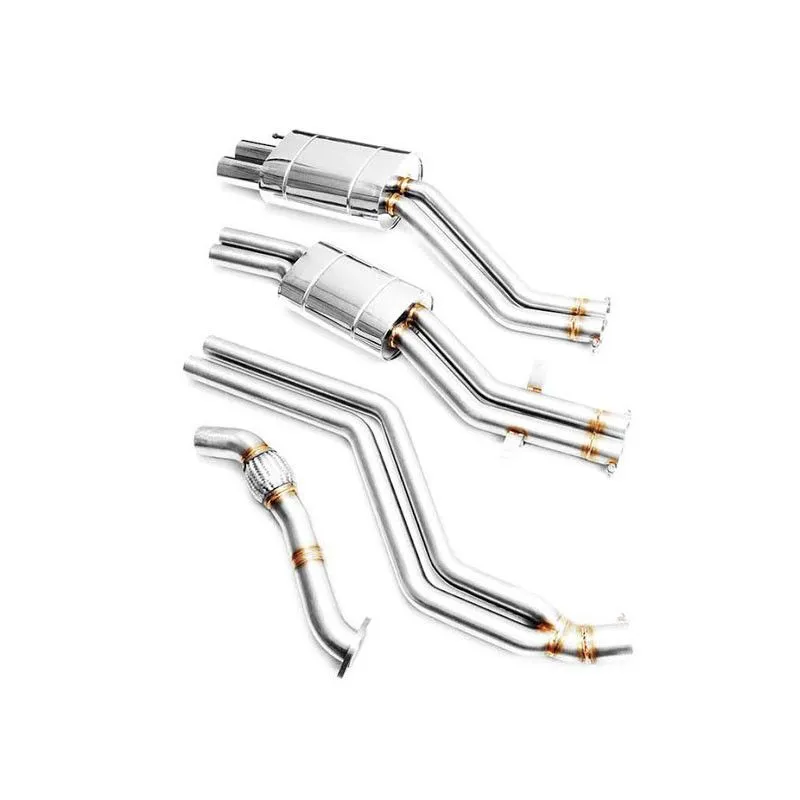 Downpipe w całości wykonany ze stali kwasoodpornej (T304, X5CrNi18-10, 1.4301, AISI 304, 0H18N9). Każdy element produktu wykonany w technologii CNC. Produkt posiada 24-miesięczną gwarancję producenta.