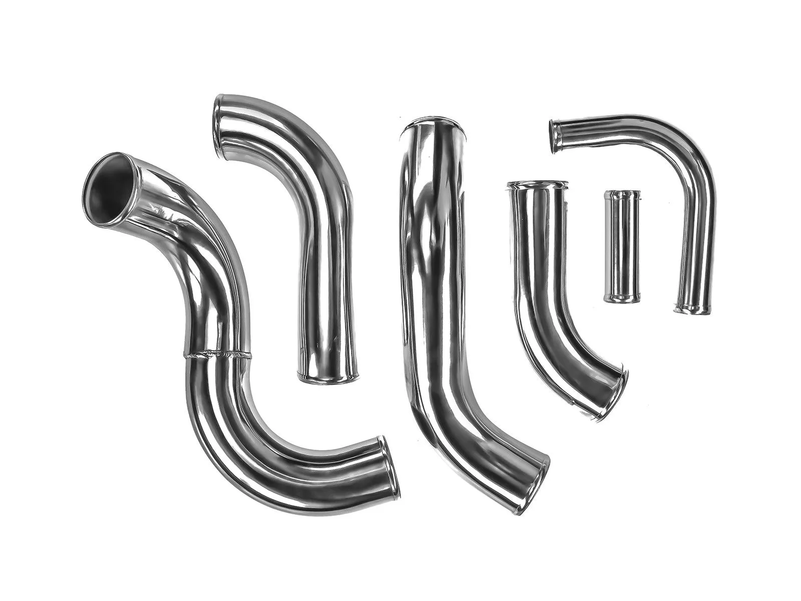 Kompletny zestaw intercoolera dedykowany do Mazdy RX-7 fd3s 13b fmrc Twin Turbo 1993-1997 złożony jest z odpowiednio dociętych i wyprofilowanych rur oraz kolanek silikonowych i aluminiowych, intercooler posiada mocowania do karoserii. Zestaw zawiera wszystkie części niezbędne do prawidłowego montażu intercoolera w samochodzie. Zalecany montaż w warsztacie tuningowym. , wystarczający do mocy 660KM. Posiada bardzo wydajny rdzeń, grube ścianki wykonane z najwyższej jakości polerowanego aluminium, co gwarantuje ogromną wytrzymałość, świetne chłodzenie, a także doskonałe przepływy powietrza (w przeciwieństwie do intercoolerów z samochodów dostawczych nie "zapychają" dolotu). Znakomicie zastępuje seryjny intercooler zwiększając osiągi samochodu. Nasze intercoolery jedyne na Allegro były testowane do 10 barów - nawet tak duże ciśnienie nie robi na nich żadnego wrażenia. W przeciwieństwie do podobnych intercoolerów z Allegro, wszystkie sprzedawane na naszych aukcjach chłodnice posiadają nowy, dużo wydajniejszy rdzeń drugiego typu! Stary rdzeń widoczny po prawej stronie miał bardzo rzadko ułożone żeberka, do tego tylko w jednym rzędzie (patrząc przez wlot było widać wylot), co skutkowało słabym chłodzeniem - przelatujące nim powietrze nie oddawało całego ciepła. Oferowane na naszych aukcjach intercoolery posiadają dużo gęstszy, naprzemiennie ułożony radiator, co gwarantuje ogromną poprawę chłodzenia! Oprócz tego widoczny wyżej zewnętrzny radiator ma dodatkowo nacinane (wentylowane) żeberka, dzięki czemu znacznie szybciej oddaje swoje ciepło. Nie ma potrzeby przenoszenia pompy ABS ani AC! Rozmiar rdzenia: 600x280x70mm wlot: 76mm wylot: 70mm Kolor - Pomarańczowy