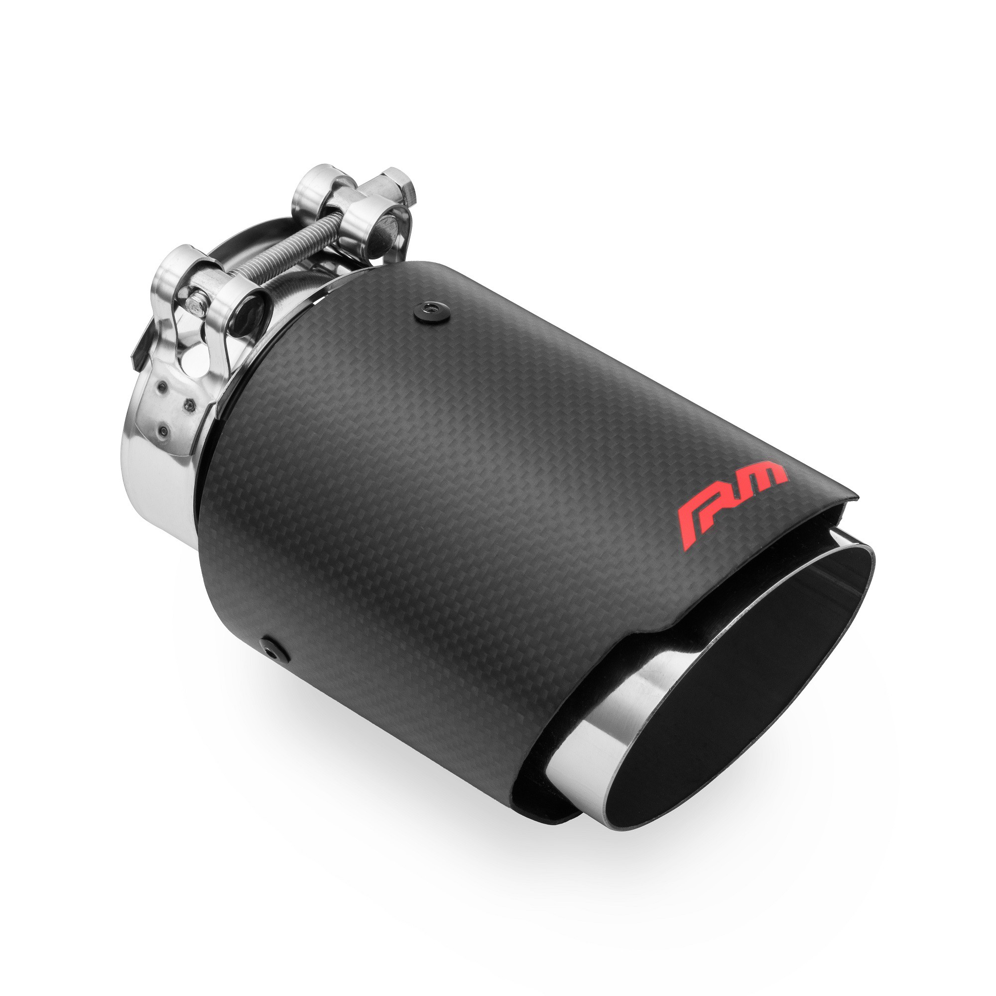 Końcówka wydechu z włókna węglowego i wysokiej jakości stali nierdzewnej (T304). Obejma zaciskowa na wlocie umożliwia łatwą instalację, bez konieczności wiercenia lub spawania. Łatwa regulacja pozycji po zamontowaniu. Produkt posiada 12 miesięcy gwarancji.