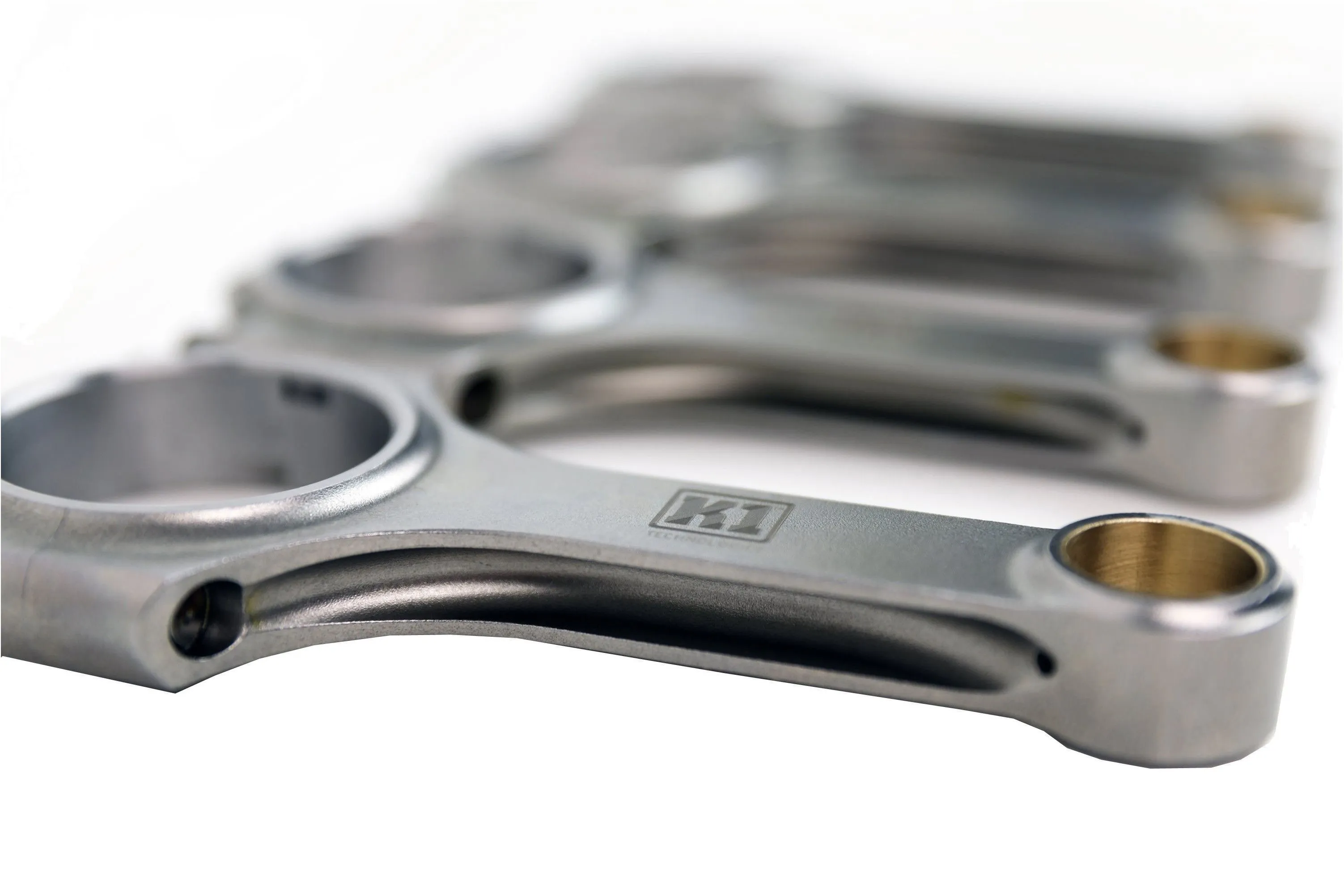 Kute korbowody i wały korbowodowe firmy K1 wykonane są z najwyższej jakości stali 4340. Dzięki ogormnemu doświadczeniu w projektowaniu i produkcji są to produkty bardzo dobrej jakości dostępne w przystępnej cenie. Produkty K1 technologies wykonane są z niezwykłą dokładnością (tolerancja otworów łożysk jest utrzymana na poziomie +/-.0001") spełniając wysokie wymagania stawiane w wyścigach i rajdach samochodowych. Używane są wyłącznie śruby ARP (ARP 2000 w standardzie oraz 625 plus bolt upgrades jako opcja). Tuleje z brązu redukują tarcie i przyczyniają się do dłuższej żywotności. Sworznie typu Press-fit są dostępne w niektórych rozmiarach korbowodów. Wszystkie korbowody są w 100% projektowane, wykańczane i kontrolowane w USA. Wszystkie wały korbowe są wykonane ze stali 4340 i posiadają utwardzone rdzenie dla zwiększenia wytrzymałości na rozciąganie. Powierzchnie łożysk są polerowane i azotowane dla zwiększenia odporności na zużycie. Śruby ARP są instalowane i dokręcane zgodnie z dokładną specyfikacją przed honowaniem, aby zapewnić dokładną i powtarzalną geometrię otworu. Wszystkie korbowody K1 Technologies są honowane w siedzibie producenta. Korbowody K1 technologies są dopasowywane wagowo do zestawów i pakowane w pudełka, z zaznaczonymi wagami (obrotowymi, posuwisto-zwrotnymi i całkowitymi) w celu ułatwienia procesu wyważania. Produkt na zamówienie.