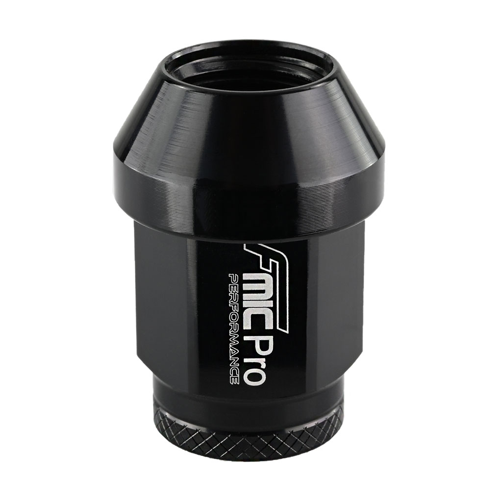 Nakrętka aluminiowa do kół FMIC.PRO M12x1.25 Czarna 1 szt. stożkowa przelotowa Popraw wygląd zewnętrzny swojego samochodu z pomocą aluminiowych nakrętek FMIC.Pro. Nakrętki do felg samochodowych wykonane z lotniczego stopu aluminium 7075-T6, charakteryzującego się wysoką wytrzymałością mechaniczna oraz doskonałą odpornością na zmęczenie materiału. Dzięki zastosowaniu precyzyjnego procesu kucia uzyskano jednorodną strukturę, zwiększona gęstość oraz lepsze właściwości mechaniczne, co przekłada się na optymalną trwałość i bezpieczeństwo w warunkach intensywnej eksploatacji. Szczególnie polecane do sportów motorowych, takich jak drift, rajdy, wyścigi torowe, rallycross, oraz time attack, gdzie wymagana jest niezrównana jakość, niezawodność i bezpieczeństwo przy ekstremalnych obciążeniach. Niska waga 17g stanowi lekką, ale wytrzymałą alternatywę dla standardowych nakrętek. Nakrętki o konstrukcji z otwartym końcem o całkowitej długości 35mm i radełkowanym końcem dla szybkiej instalacji. Nakrętki FMIC.Pro występują w kolorach: czarnym, niebieskim, srebrnym, czerwonym, szary (gun metal). - Do szpilek M12 x 1,25 przelotowych - Długość: 35mm - Materiał: aluminium 7075-T6 - Wyjątkowo lekkie,1 szt. waży 17 g - Obniżenie masy rotacyjnej - Maksymalna wytrzymałość na rozciąganie: 73 500–76 300 psi
