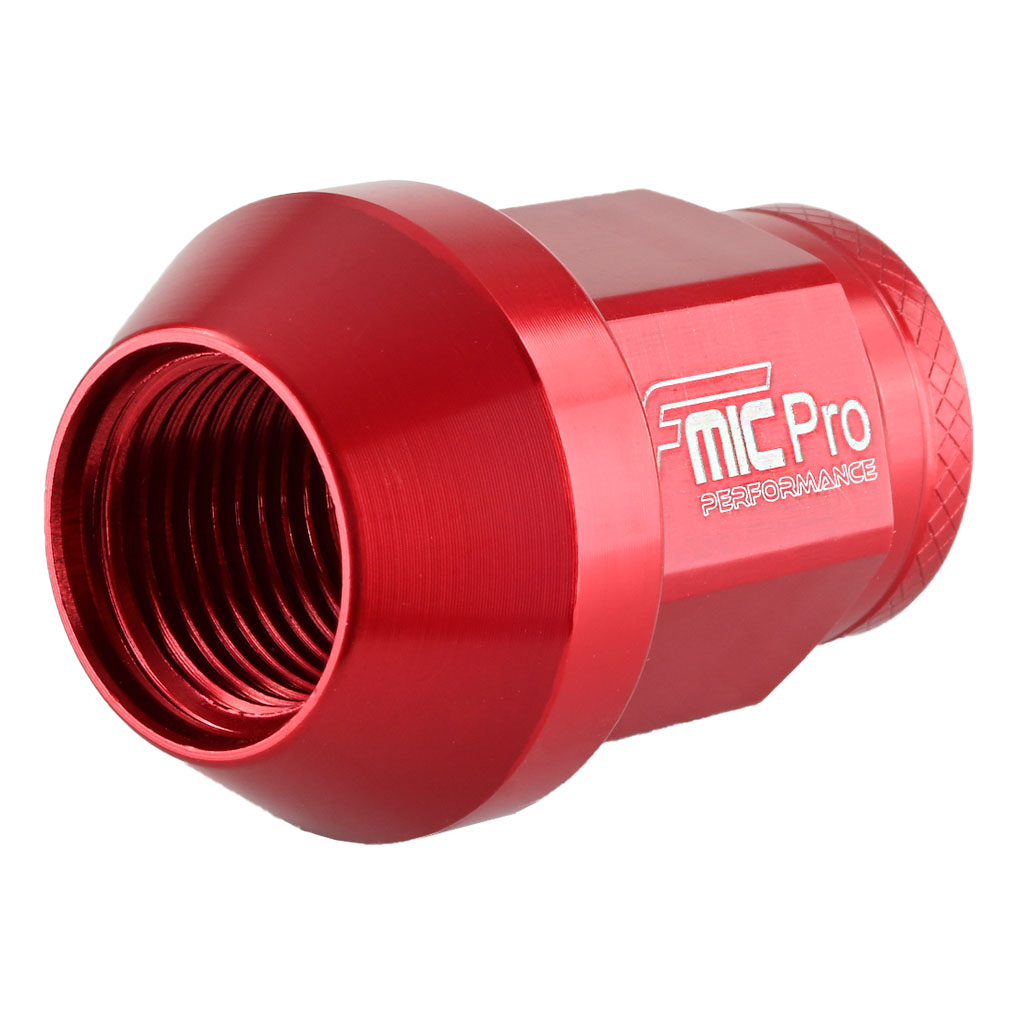 Nakrętka aluminiowa do kół FMIC.PRO M12x1.5 Czerwona 1 szt. stożkowa przelotowa Popraw wygląd zewnętrzny swojego samochodu z pomocą aluminiowych nakrętek FMIC.Pro. Nakrętki do felg samochodowych wykonane z lotniczego stopu aluminium 7075-T6, charakteryzującego się wysoką wytrzymałością mechaniczna oraz doskonałą odpornością na zmęczenie materiału. Dzięki zastosowaniu precyzyjnego procesu kucia uzyskano jednorodną strukturę, zwiększona gęstość oraz lepsze właściwości mechaniczne, co przekłada się na optymalną trwałość i bezpieczeństwo w warunkach intensywnej eksploatacji. Szczególnie polecane do sportów motorowych, takich jak drift, rajdy, wyścigi torowe, rallycross, oraz time attack, gdzie wymagana jest niezrównana jakość, niezawodność i bezpieczeństwo przy ekstremalnych obciążeniach. Niska waga 17g stanowi lekką, ale wytrzymałą alternatywę dla standardowych nakrętek. Nakrętki o konstrukcji z otwartym końcem o całkowitej długości 35mm i radełkowanym końcem dla szybkiej instalacji. Nakrętki FMIC.Pro występują w kolorach: czarnym, niebieskim, srebrnym, czerwonym, szary (gun metal). - Do szpilek M12 x 1,5 przelotowych - Długość: 35mm - Materiał: aluminium 7075-T6 - Wyjątkowo lekkie,1 szt. waży 17 g - Obniżenie masy rotacyjnej - Maksymalna wytrzymałość na rozciąganie: 73 500–76 300 psi