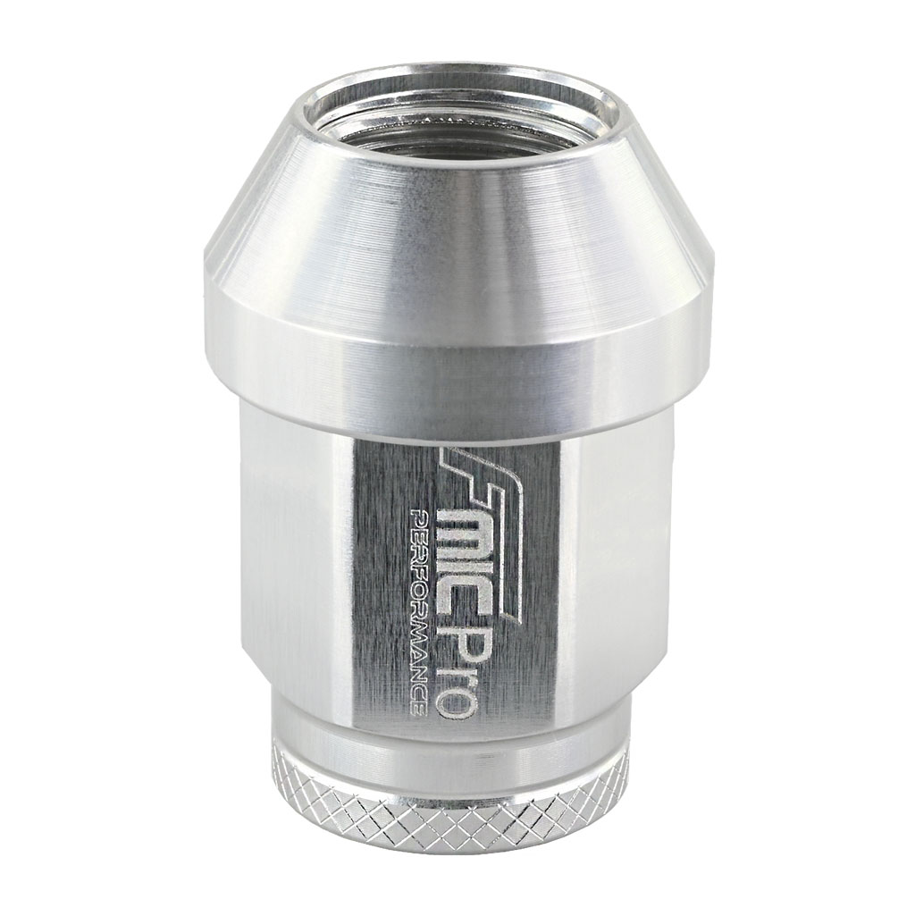 Nakrętka aluminiowa do kół FMIC.PRO M14x1.25 Srebrna 1 szt. stożkowa przelotowa Popraw wygląd zewnętrzny swojego samochodu z pomocą aluminiowych nakrętek FMIC.Pro. Nakrętki do felg samochodowych wykonane z lotniczego stopu aluminium 7075-T6, charakteryzującego się wysoką wytrzymałością mechaniczna oraz doskonałą odpornością na zmęczenie materiału. Dzięki zastosowaniu precyzyjnego procesu kucia uzyskano jednorodną strukturę, zwiększona gęstość oraz lepsze właściwości mechaniczne, co przekłada się na optymalną trwałość i bezpieczeństwo w warunkach intensywnej eksploatacji. Szczególnie polecane do sportów motorowych, takich jak drift, rajdy, wyścigi torowe, rallycross, oraz time attack, gdzie wymagana jest niezrównana jakość, niezawodność i bezpieczeństwo przy ekstremalnych obciążeniach. Niska waga 17g stanowi lekką, ale wytrzymałą alternatywę dla standardowych nakrętek. Nakrętki o konstrukcji z otwartym końcem o całkowitej długości 35mm i radełkowanym końcem dla szybkiej instalacji. Nakrętki FMIC.Pro występują w kolorach: czarnym, niebieskim, srebrnym, czerwonym, szary (gun metal). - Do szpilek M14 x 1,25 przelotowych - Długość: 35mm - Materiał: aluminium 7075-T6 - Wyjątkowo lekkie,1 szt. waży 17 g - Obniżenie masy rotacyjnej - Maksymalna wytrzymałość na rozciąganie: 73 500–76 300 psi
