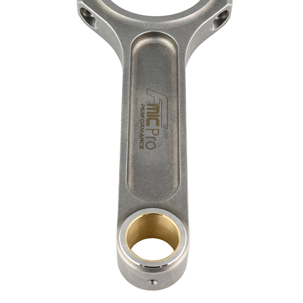 Najwyższej jakości korbowody FMIC.Pro, wykonane z kutej stali AISI 4340 i odgazowywane próżniowo. Dzięki zastosowaniu przekroju I-beam osiągają wytrzymałość do 200KM na cylinder. Wzmocniona główka, wyposażona w wysokiej jakości panewkę umożliwia zastosowanie pływającego sworznia. Zaprojektowane z dbałością o każdy szczegół uwzględniając nasze wieloletnie doświadczenie w dostarczaniu najwyższej jakości części do wyczynowych silników.