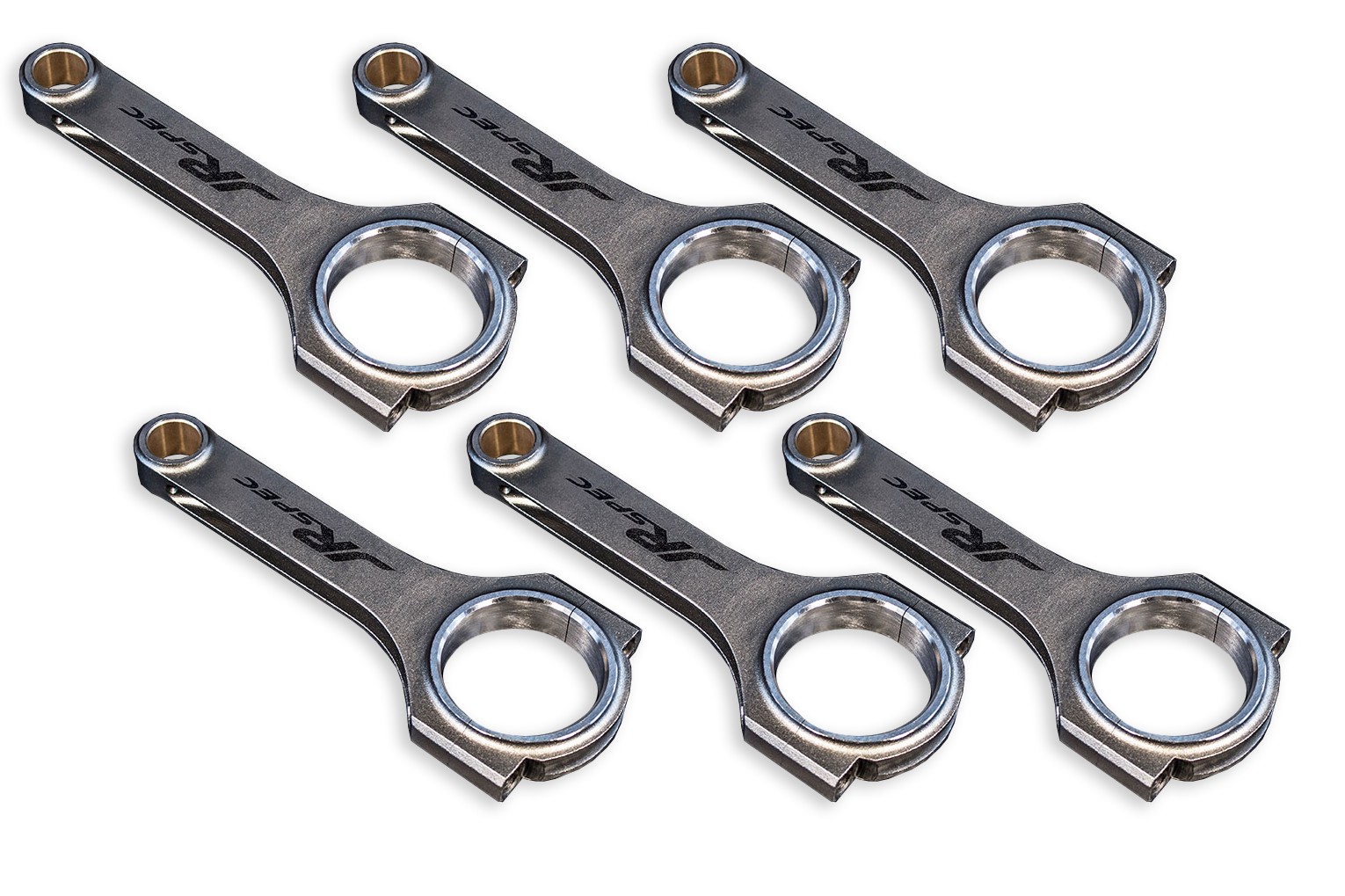Komplet kutych korbowodów marki JRspec wykonanych w technologii H-beam do samochodów Audi RS4 2.7L V6 Bi-TurboWykonane są z najwyższej jakości stali odkuwanej ANSI4340 (EN24), wytrzymałość przekraczająca 200KM na cylinder.Odgazowane próżniowo przed obróbką.Wszystkie odkuwki przed obróbka prześwietlane RTG.Obrabiane cieplnie (normalizowane).Po obróbce wyśrutowane powierzchniowo (odprężone).Krawędzie wyrównane. Każdy otwór był dwukrotnie honowany (przed i po spasowaniu stopy), co gwarantuje jego idealny okrąg (tolerancja 0,01mm). Oprócz tego korbowody zostały skątowane (są idealnie proste w pionie) do 0,01mm - wielu markowych producentów ma tu rozbieżności przekraczające nawet 0,1mm, co skutkuje szybszym wycieraniem się panewek! Każdy pojedynczy komplet korbowód + stopa posiada swój indywidualny numer. Komplety pakowane wg wagi i wyważone END to END. Główki dodatkowo wzmocnione, posiadające najwyższej jakości tuleje z brązu w miejscu osadzenia sworznia tłoka. Korbowody zostały przetestowane w ponad 1500 konnej Calibrze Tsunami. Długość: 154mmSworzeń: 21mmŚruby: 5/16"Rodzaj - Korbowody
