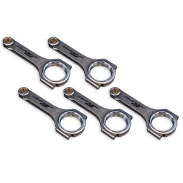 Komplet kutych korbowodów marki JRspec wykonanych w technologii H-beam do samochodów Volvo z silnikami o pojemności 2.3, 2.4, 2.5l (5cyl).Wykonane są z najwyższej jakości stali odkuwanej ANSI4340 (EN24), wytrzymałość przekraczająca 200KM na cylinder.Odgazowane próżniowo przed obróbką.Wszystkie odkuwki przed obróbka prześwietlane RTG.Obrabiane cieplnie (normalizowane).Po obróbce wyśrubowane powierzchniowo (odprężone).Krawędzie wyrównane. Każdy otwór był dwukrotnie honowany (przed i po spasowaniu stopy), co gwarantuje jego idealny okrąg (tolerancja 0,01mm). Oprócz tego korbowody zostały skątowane (są idealnie proste w pionie) do 0,01mm - wielu markowych producentów ma tu rozbieżności przekraczające nawet 0,1mm, co skutkuje szybszym wycieraniem się panewek! Każdy pojedynczy komplet korbowód + stopa posiada swój indywidualny numer. Komplety pakowane wg wagi i wyważone END to END. Główki dodatkowo wzmocnione, posiadające najwyższej jakości tuleje z brązu w miejscu osadzenia sworznia tłoka. Korbowody zostały przetestowane w ponad 1500 konnej Calibrze Tsunami. Długość: 143mmSworzeń: 23mm Śruby: 3/8"Rodzaj - Korbowody + śruby ARP