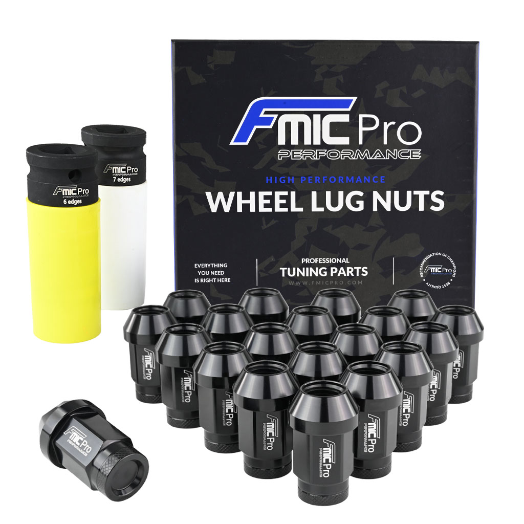 Kute nakrętki aluminiowe do kół FMIC.PRO M14x1.5 Czarne 20szt. stożkowe Popraw wygląd zewnętrzny swojego samochodu z pomocą zestawu aluminiowych nakrętek zabezpieczających Fmic.Pro. Nakrętki do felg samochodowych wykonane z lotniczego stopu aluminium 7075-T6, charakteryzującego się wysoką wytrzymałością mechaniczna oraz doskonałą odpornością na zmęczenie materiału. Dzięki zastosowaniu precyzyjnego procesu kucia uzyskano jednorodną strukturę, zwiększona gęstość oraz lepsze właściwości mechaniczne, co przekłada się na optymalną trwałość i bezpieczeństwo w warunkach intensywnej eksploatacji. Szczególnie polecane do sportów motorowych, takich jak drift, rajdy, wyścigi torowe, rallycross, oraz time attack, gdzie wymagana jest niezrównana jakość, niezawodność i bezpieczeństwo przy ekstremalnych obciążeniach. Niska waga 20 g szt. stanowi lekką, ale wytrzymałą alternatywę dla standardowych nakrętek. Każdy zestaw zawiera 16 standardowych nakrętek, oraz 4 nakrętki siedmiokątne zabezpieczające. W zestawie dwie kute nasadki do demontażu. Nakrętki o całkowitej długości 40 mm i radełkowanym końcem dla szybkiej instalacji. Nakrętki FMIC.Pro występują w kolorach: czarnym, niebieskim, srebrnym, czerwonym, szarym (gun metal). - Do szpilek M14 x 1,5 - 16 szt. nakrętek sześciokątnych przelotowych - 4 szt. nakrętek siedmiokątnych przelotowych - W komplecie dwie nasadki 19mm ze stali chromowo-molibdenowej - Tuleja zabezpieczająca nasadki z miękkiego tworzywa - chroni felgę przed możliwością uszkodzenia powłoki lakierniczej. - Długość nakrętki: 40 mm - Głębokość nakrętki 35 mm - Materiał: aluminium 7075-T6 - Wyjątkowo lekkie,1 szt. waży 20 g - Obniżenie masy rotacyjnej - Maksymalna wytrzymałość na rozciąganie: 73 500–76 300 psi