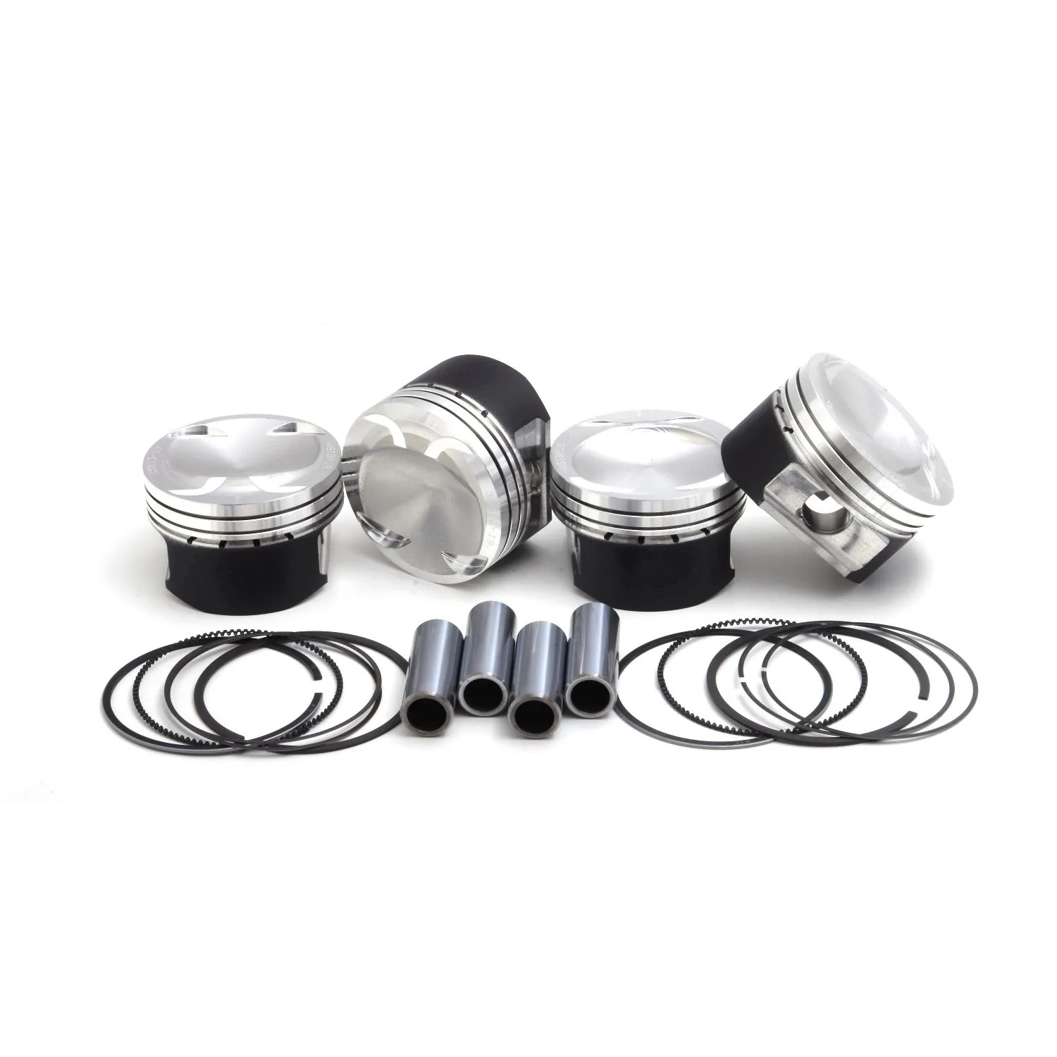 The Audi / VW 1.4L TFSI and TSI pistons are developed for mild to high tuning, mainly for road or club race cars that want to develop their engine for high mileage and/or street use. Designed by ZRP engineers and manufactured in Germany from 4032 (T6) high-silicon, low-expansion alloy. This allows the engine builder to run a closer piston to bore clearance thus producing a better seal. This minimizes the slapping noise during cold start, common place among engines running forged pistons, providing a quite operation and low oil consumption. We have chosen a Round skirt design with bottom reinforcing band, with oversize and deeper valve pockets to allow high lift camshaft profiles to be used. They have Offset pins for quiet operation and the wrist pins are made from 9310 alloy. Other features include Anti-detonation grooves to protect the first rings, gas pressure accumulator groove for better ring seal and vibration relieve. Premium Japanese quality 1.50mm x 1.20mm x 2.20mm ring package included. Product Features and Design Anti-detonation grooves for long wear life and performance Gas pressure accumulator groove in the 2nd ring land for longer wear life. Horizontal slots in the pin bore designed to allow oil to enter between the wrist-pin and pin-bore area. Precision CNC machined ring grooves 4032-T6 high-silicon / low-expansion alloy Honed pin bores 3D piston crown specific to the needs of the TSI combustion chambers Full Round skirt design with bottom reinforcing band for High HP/Boost applications Valve Pockets designed to allow over size valves and high lift camshafts Pistons designed to optimize squish for longer engine life and increased horsepower potential Optional coatings offered per request Thermal barrier coating “Blast Off Bronze" Moly Side-Skirt and Under-Crown coating “Stealth Black”