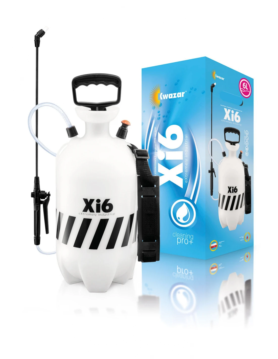 XI6 Cleaning Pro+ Opryskiwacz Extremely Industrial – Xi6, to ekonomiczna wersja opryskiwaczy Orion Pro+. Godne podkreślenia jest to, że swoimi możliwościami nie ustępuje zbytnio opryskiwaczom Orion Pro+. Różnica polega na zastosowaniu innego modelu zbiornika, co znacząco wpłynęło na jego cenę. Jest to opryskiwacz wyprodukowany pod kątem prac budowlanych i drogowych. Doskonale sprawdza się również w myjniach samochodowych. Zawór bezpieczeństwa zabezpiecza urządzenie i użytkownika przed nagromadzeniem wyższego niż dopuszczalne ciśnienia wewnątrz zbiornika. Lanca opryskiwacza zakończona jest dyszą regulowaną pozwalającą uzyskać żądany stopień rozpylenia cieczy. W opryskiwaczach Xi6 zastosowano uszczelnienia wykonane z Vitonu. Dzięki temu opryskiwacz ten charakteryzuje się podwyższoną odpornością na agresywne środki chemiczne. Prosta, sprawdzona konstrukcja umożliwia łatwą wymianę uszczelnień i konserwację opryskiwacza bez użycia narzędzi. Pasek transportowy pozwala na wygodne używanie opryskiwacza. Jest doskonałym narzędziem do prac budowlanych i drogowych – aplikacja preparatów antyadhezyjnych. Cechy produktu: Pojemność: 6L Ciśnienie (bar): 3 Uszczelnienia: Viton - FPM Wysokość: 51cm
